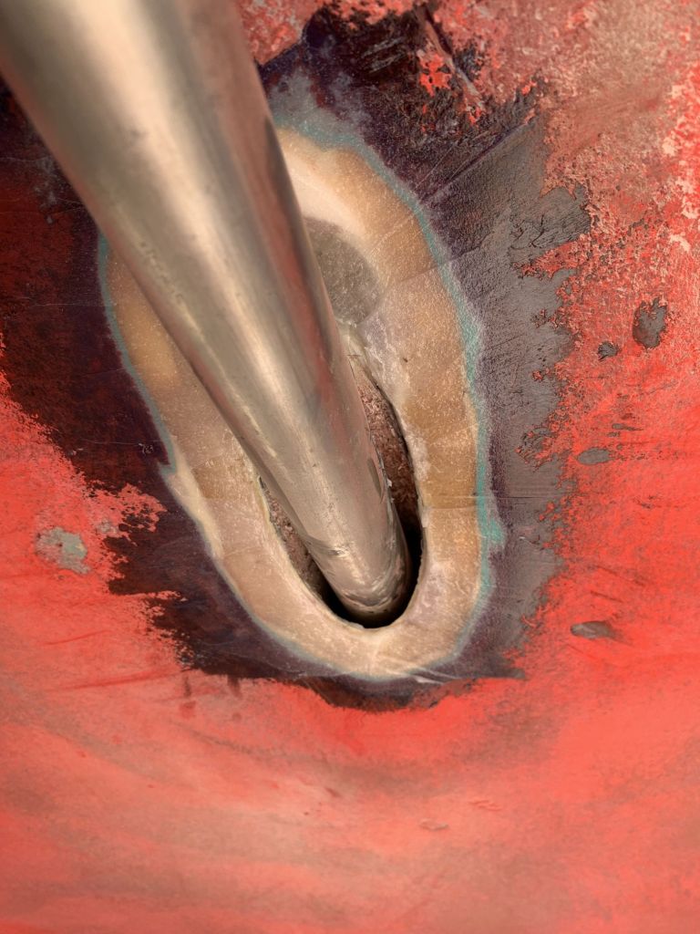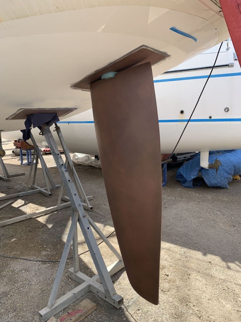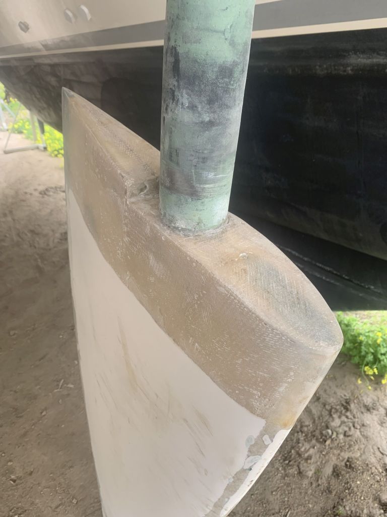 Ein letzter Blick gilt SAGITTAs Ruder. Hier hatten wir zwei Marios während einer Regenpause eine weitere Laminatlage aufgebracht und es galt zu beurteilen, inwieweit uns dies gelungen war.