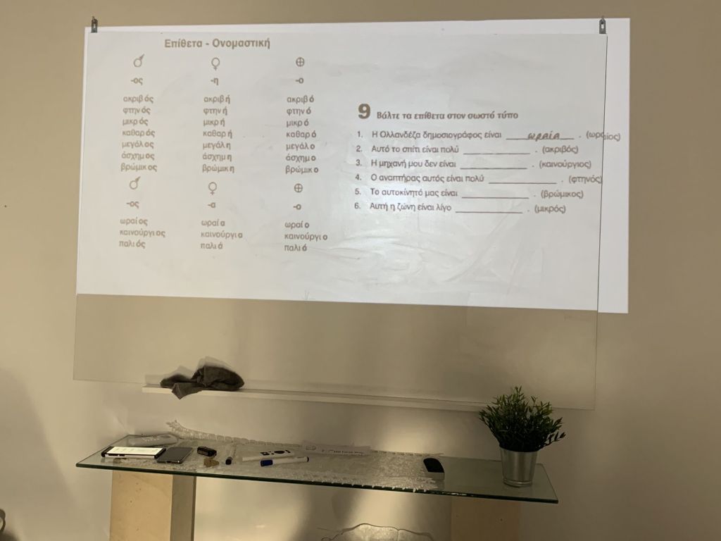 Jetzt aber, der frühe Abend bricht an, heute ist Dienstag, es wird heute die letzte Griechischstunde dieses Kurses abgehalten.