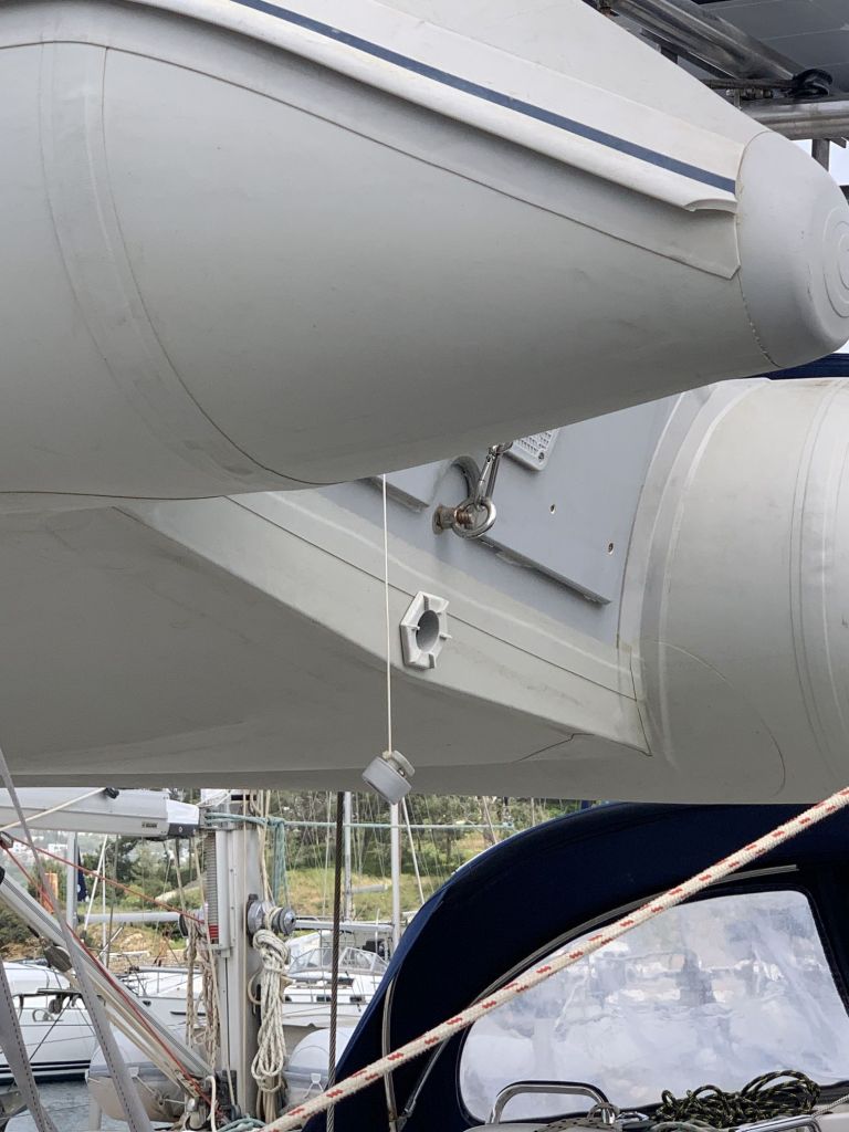 Dieses hängt jetzt nämlich in den Davits und man wüsste nicht so recht, wie es sich im Wind verhält.