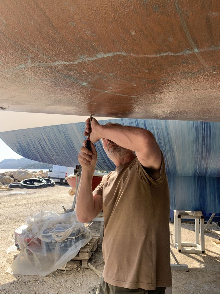 Bei LIBERTÉ kleben wir noch rasch das Seeventil ein, brechen dann aber ab. Es ist schon später Nachmittag, irgendwie reicht es für heute – wir akzeptieren, dass wir heute nicht viel gerissen haben.