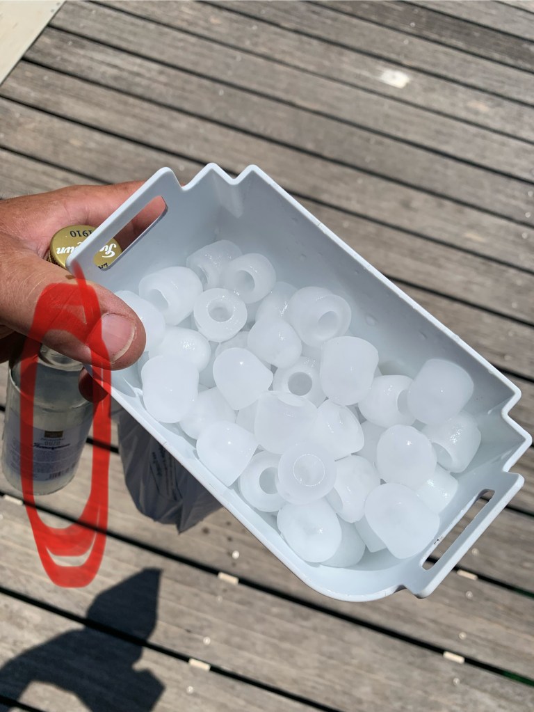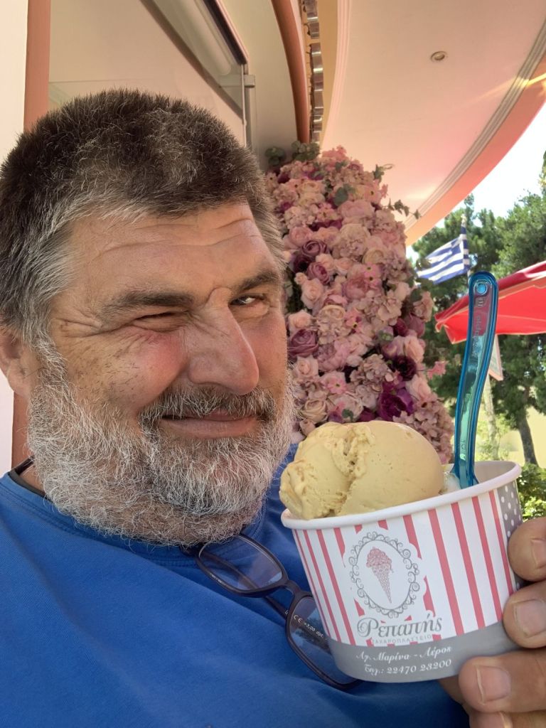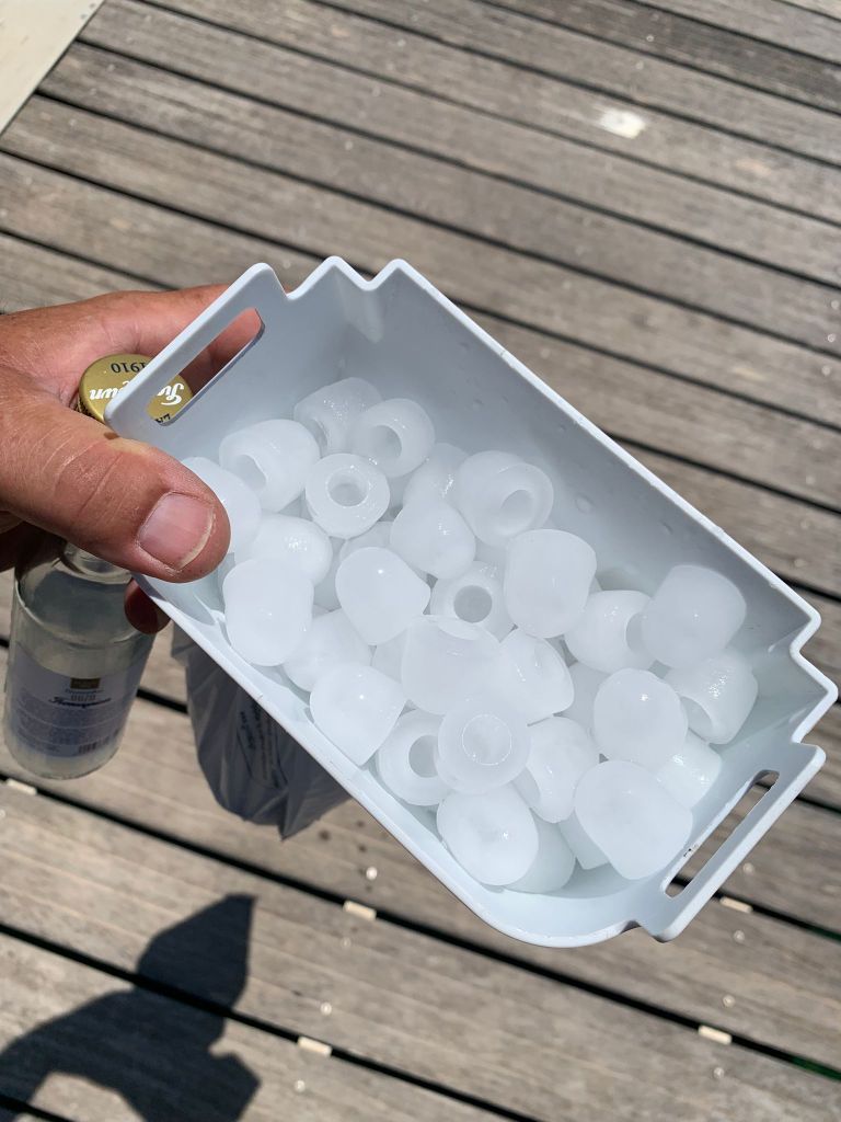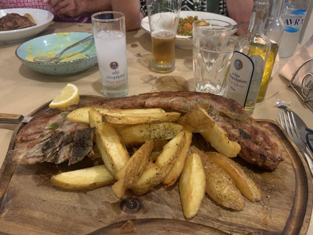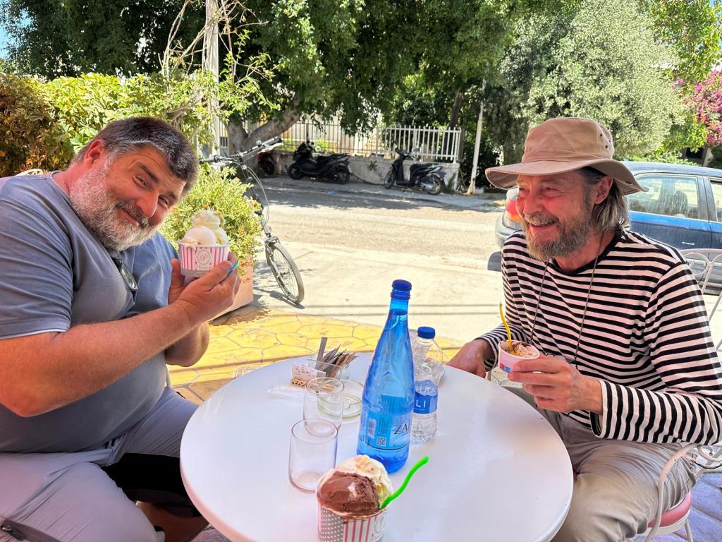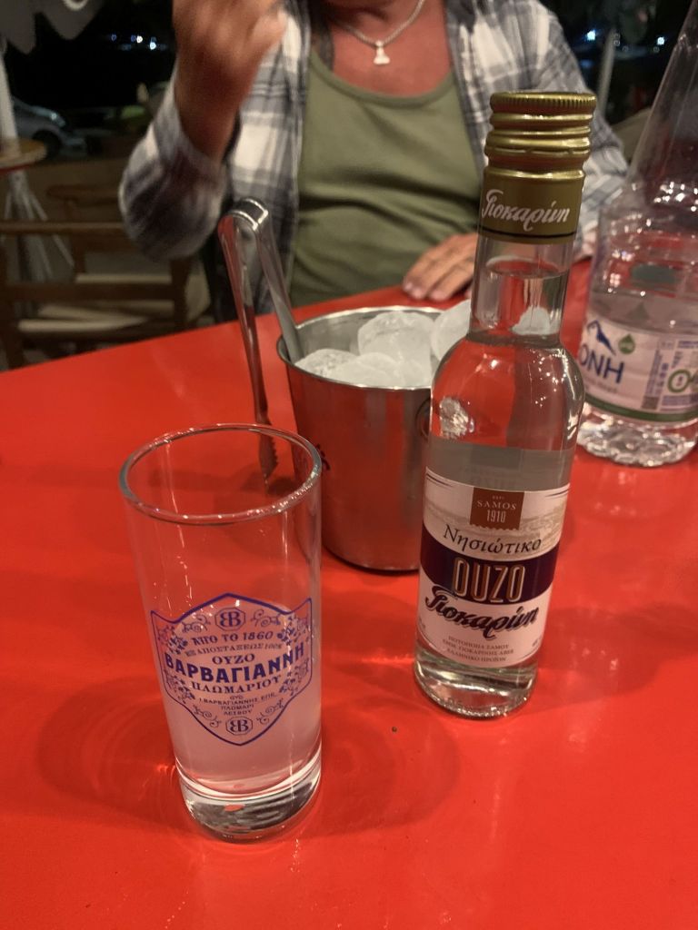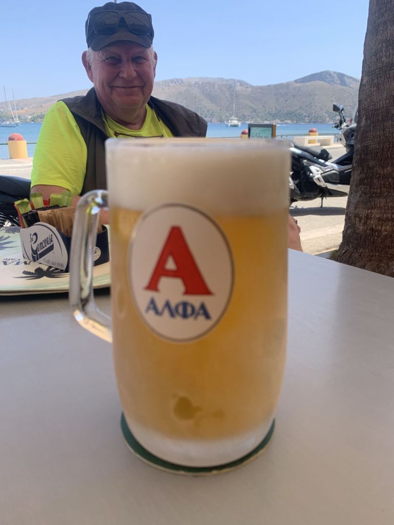 Es war ja noch offen, dass wir unseren Teil des „Deals“ einlösen – „…ein Bierchen“, dies natürlich nebst Ouzobegleitung und ein paar Meze, gehen auf uns, als Gegenleistung für den wirklich phantastischen Eiswürfelbereiter.