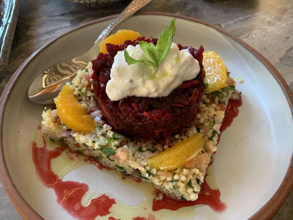 Beides klappt perfekt! Wir können reservieren, essen sehr gut und haben ein unglaubliches Erlebnis – unsere junge Bedienung spricht ein paar Worte Deutsch und stellt gezielte aber unverfängliche Fragen an Volker und Tina…