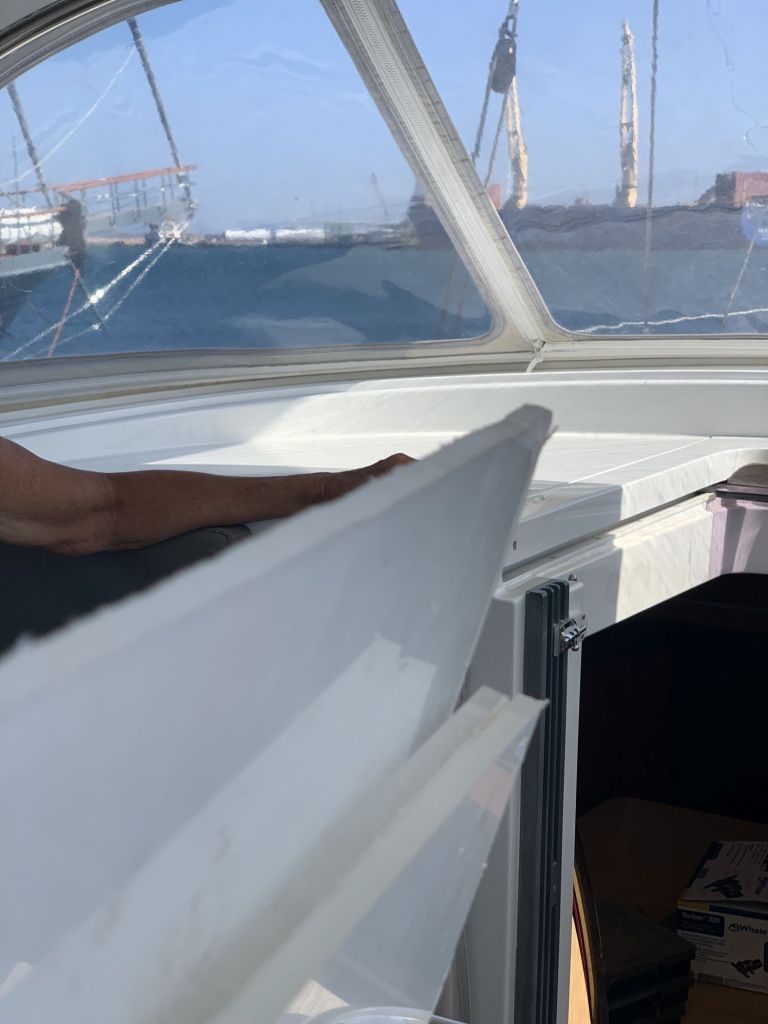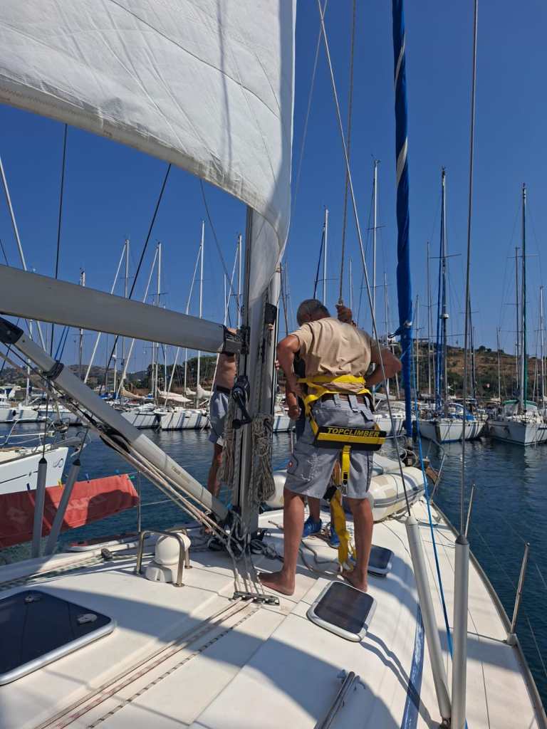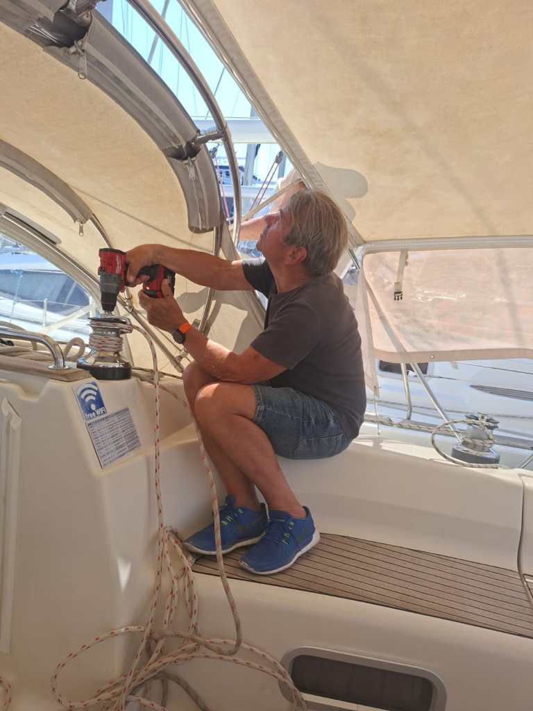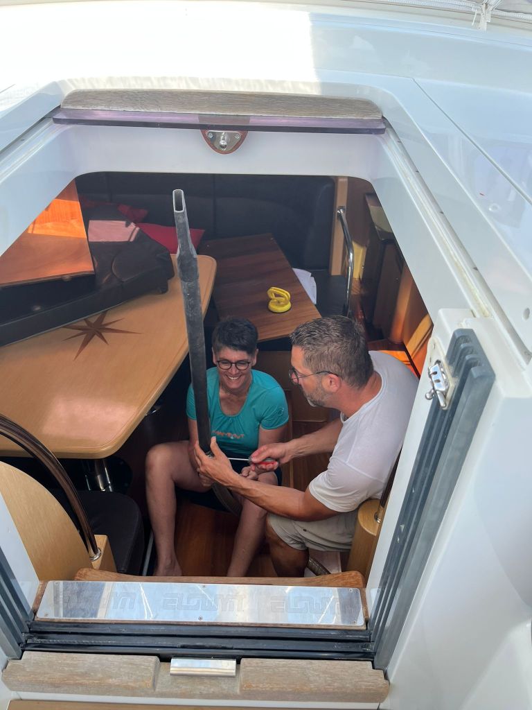 Wir bauen den defekten Boom-Vang, den Rodkicker, zusammen aus und nehmen uns vor, diesen noch gemeinsam zu versenden.