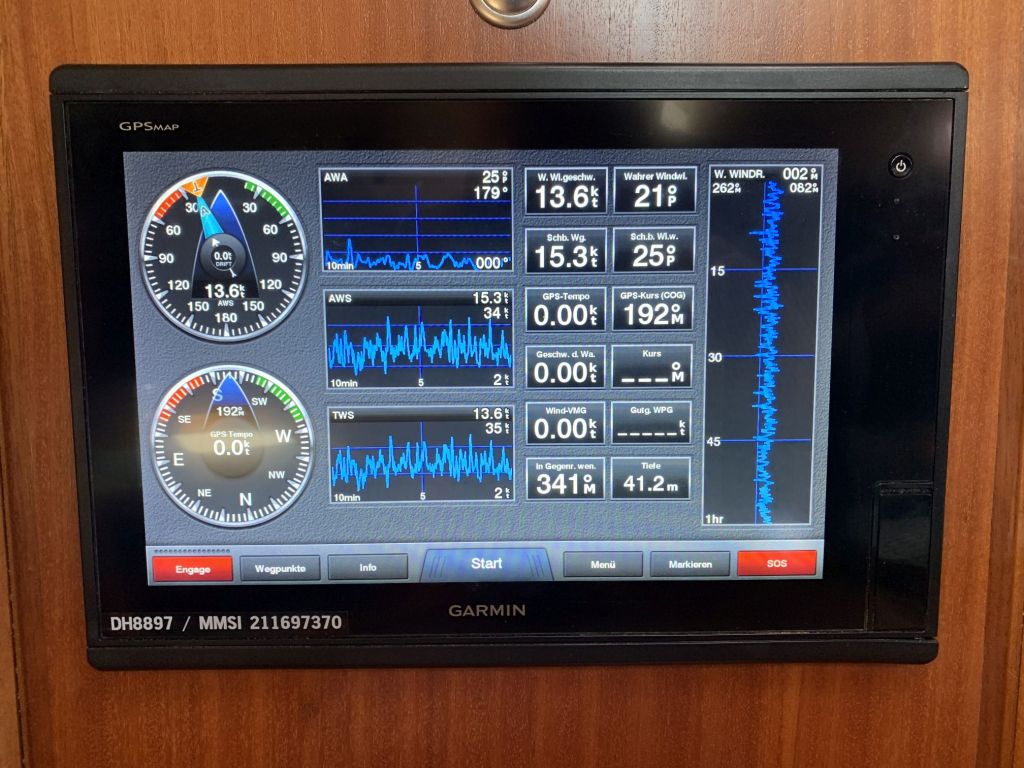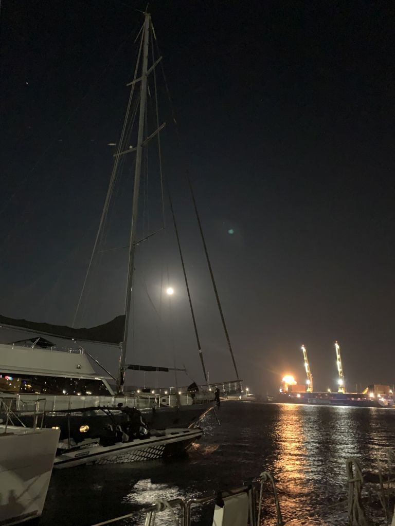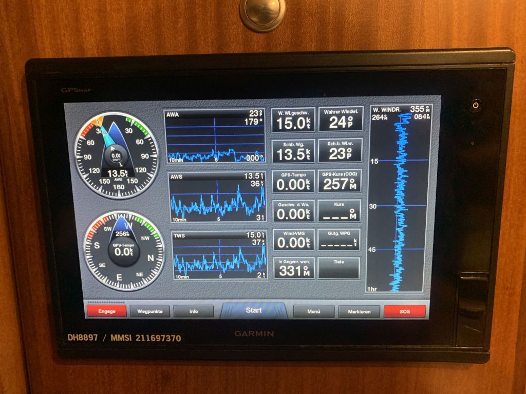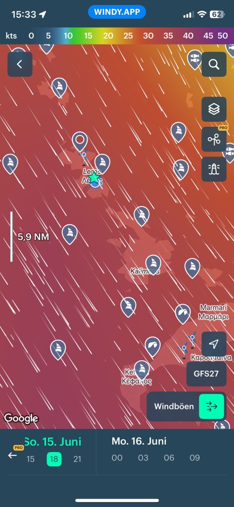 Nicht ganz in der erwarteten Stärke, aber zwischen 30 – 40kts ist auch spürbar – die Boote in der Marina haben jedenfalls ganz schön geschaukelt.