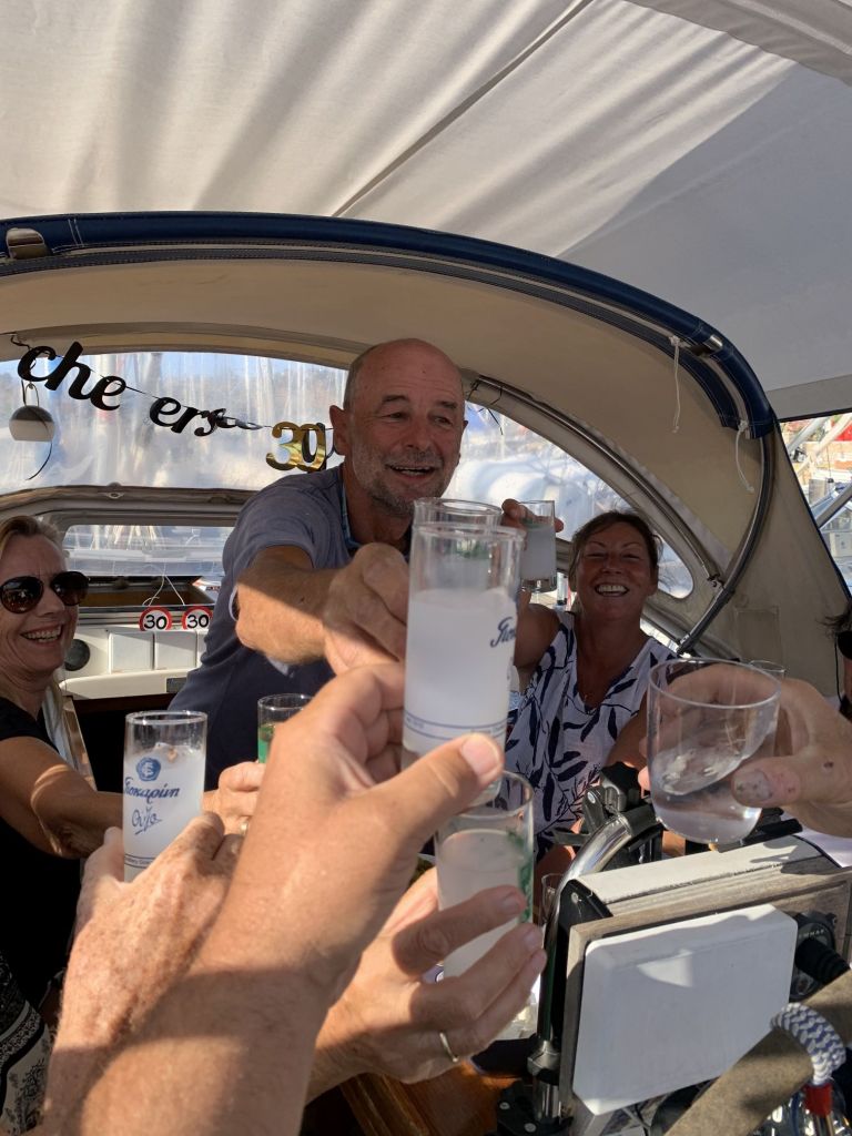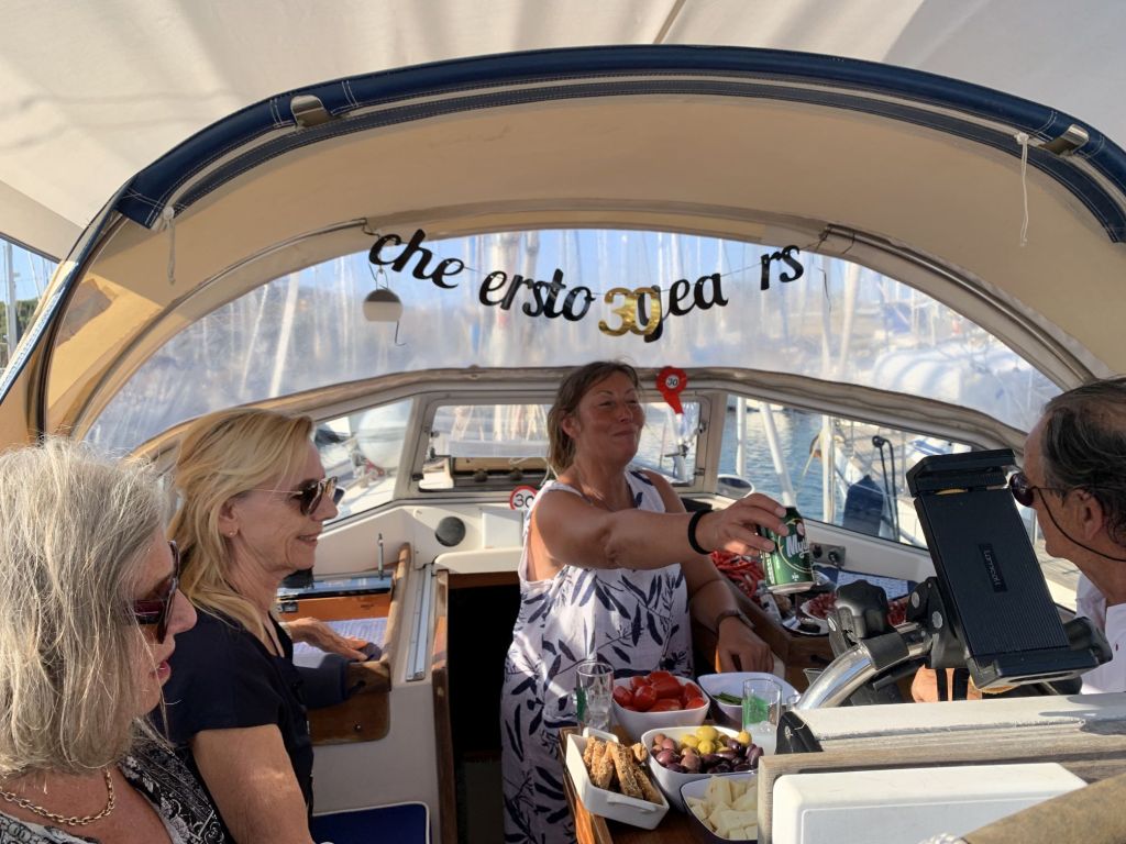 Volker ruft noch einen Absacker auf ELOWYN aus, an dem Sibylle und Gabi aber nicht mehr teilnehmen.