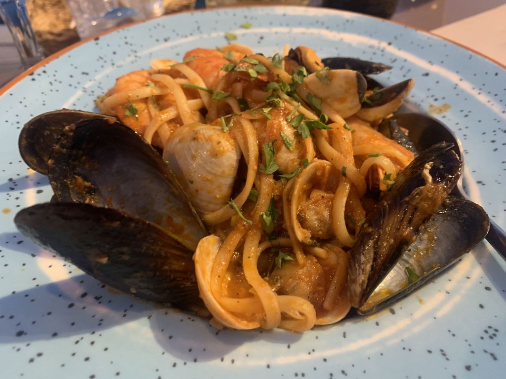 Für den Abend ist unsere Wahl dann auf das „Navarone“ in Agia Marina gefallen – eine bekannte Adresse, aber Kristina war noch nicht dort.