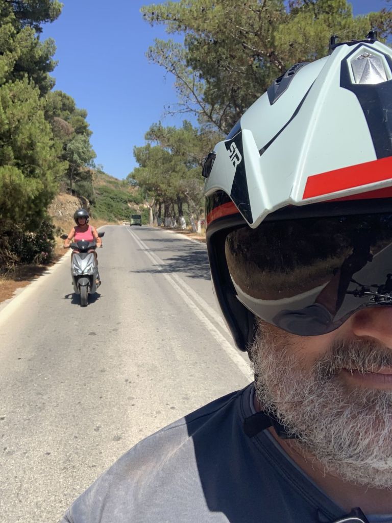 Endlich war es soweit, Sibylle setzt sich zu den Freunden in den beengten Jimny, ich steige auf meine geliebte GS und wir fahren zusammen die rund 5km zu unserem Häuschen auf einer Anhöhe in Plaka.