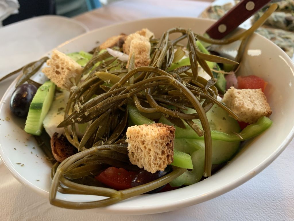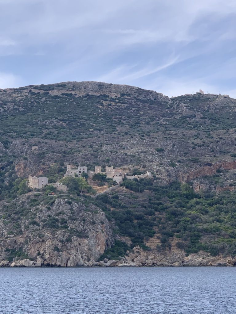 Es ist viel zu windig dort, der Meltemi faucht über die Tische und wir vertagen den Besuch auf ein Andermal.