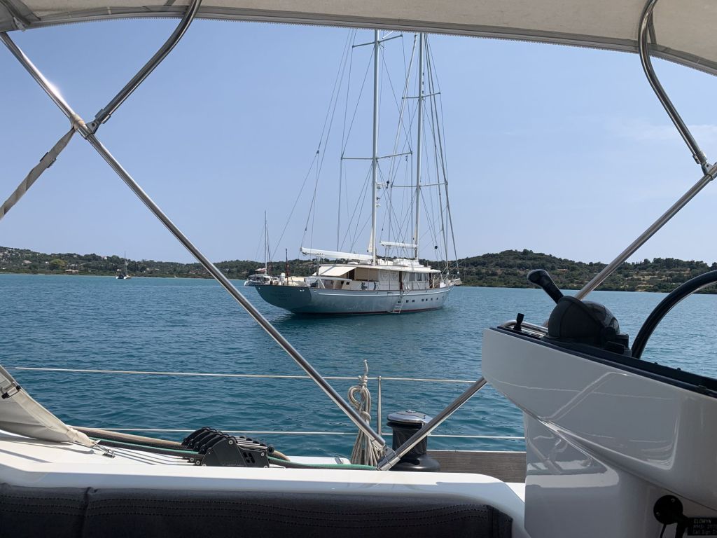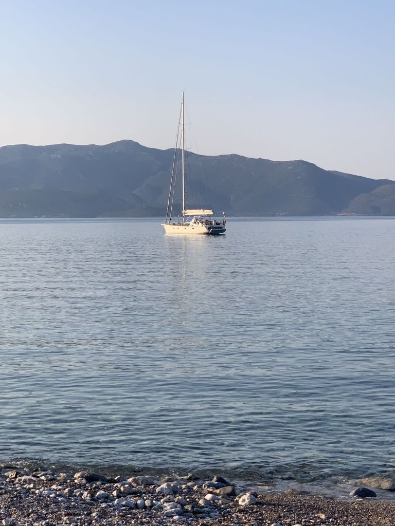 Der Ort Poros auf Kefalonia liegt in diesem Moment an Steuerbord querab und wir setzen sofort Kurs auf den schönen Strand des Ortes.