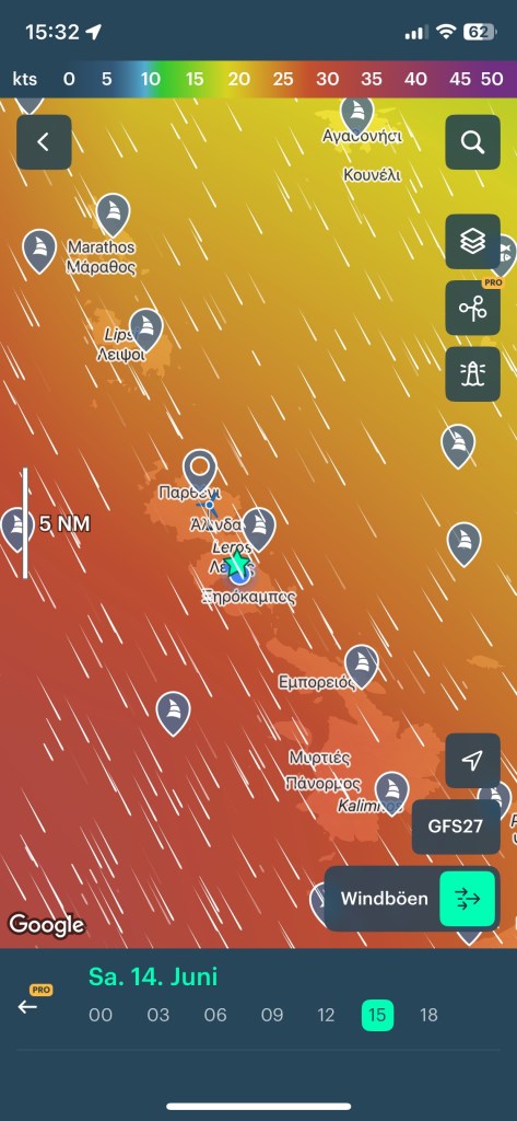 Ich mag das ja und es dauert auch eine gewisse Zeit bis mich der stetige Meltemi nervt – noch ist es nicht soweit.