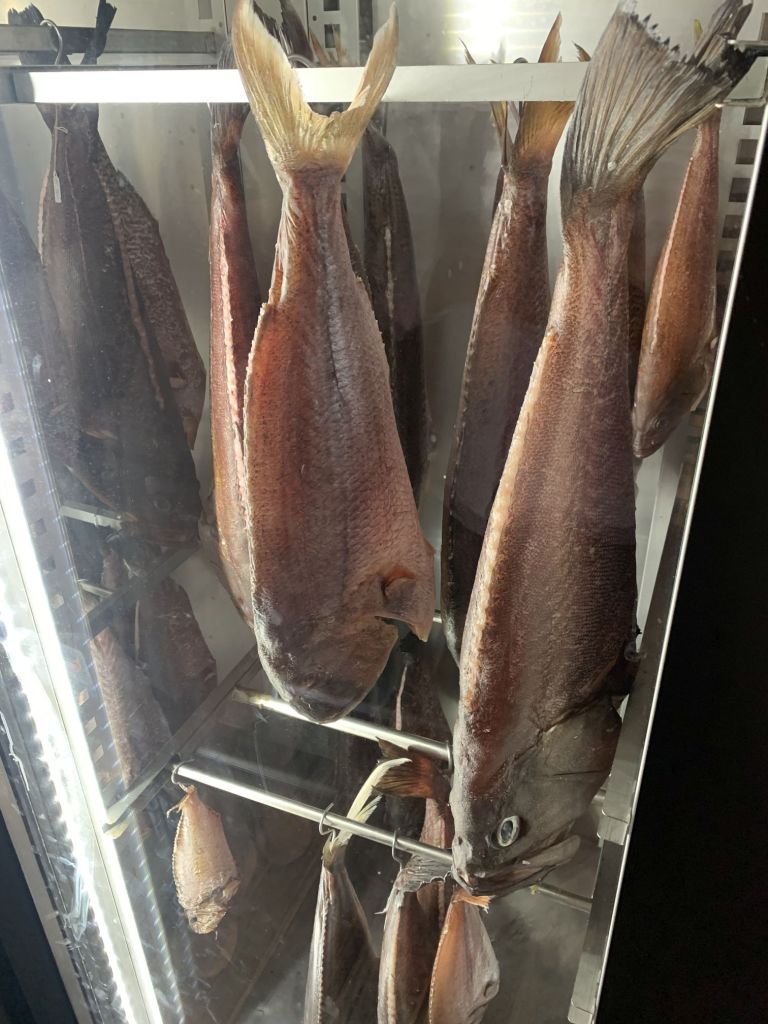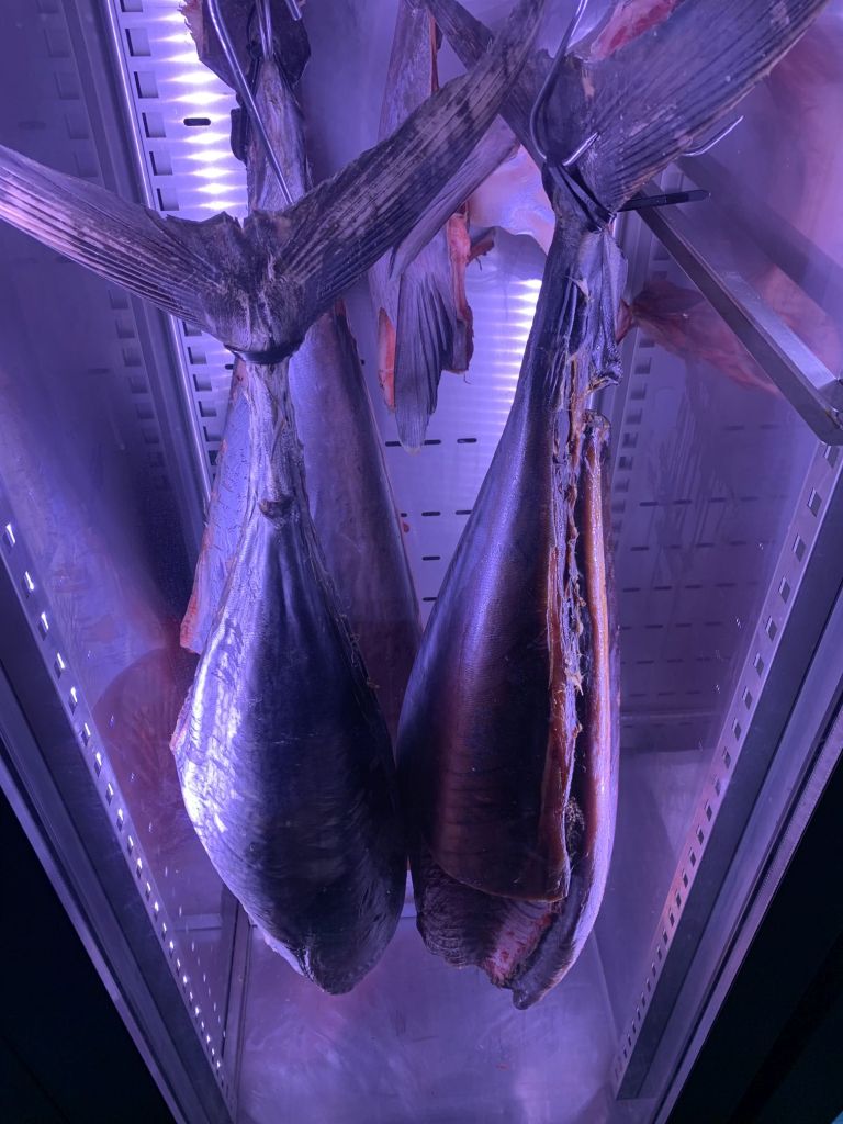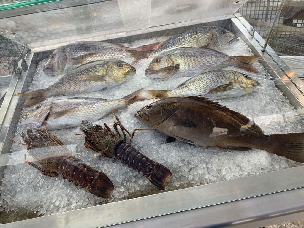 Am Weg dorthin, kommen wir an den Fisch-Kühlschränken vorbei und erhaschen schonmal einen Blick auf die feilgebotenen Leckereien.