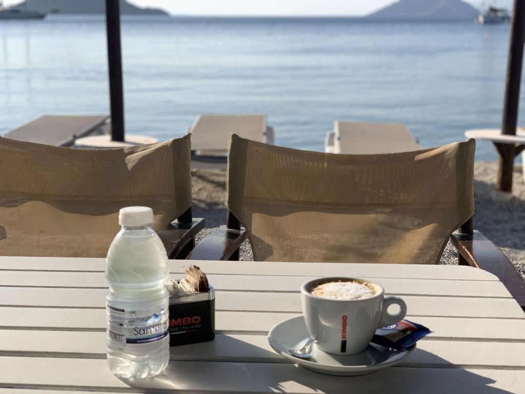 Der weitere Verlauf des Tages ist eher unspektakulär – wir verbringen unseren Nachmittag in einer der Bars am „Dio Liskaria“ Strand und wollen eigentlich baden gehen.