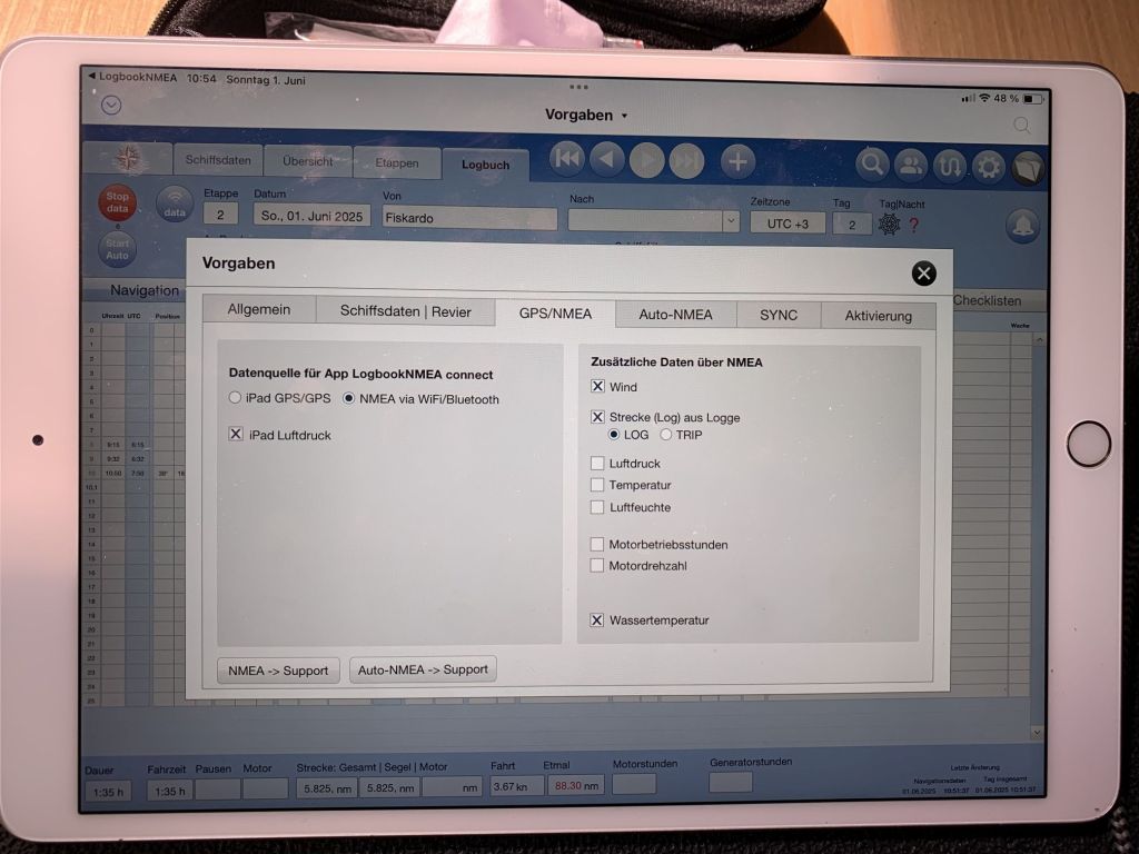 Die einen lesen, die anderen hören Hörbücher. Es bleibt Raum um etwas zu dösen und ich – ich widme mich dem neuen, elektronischen Logbuch!