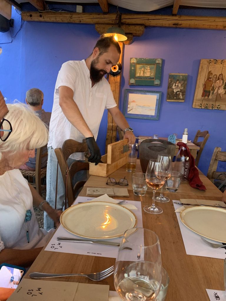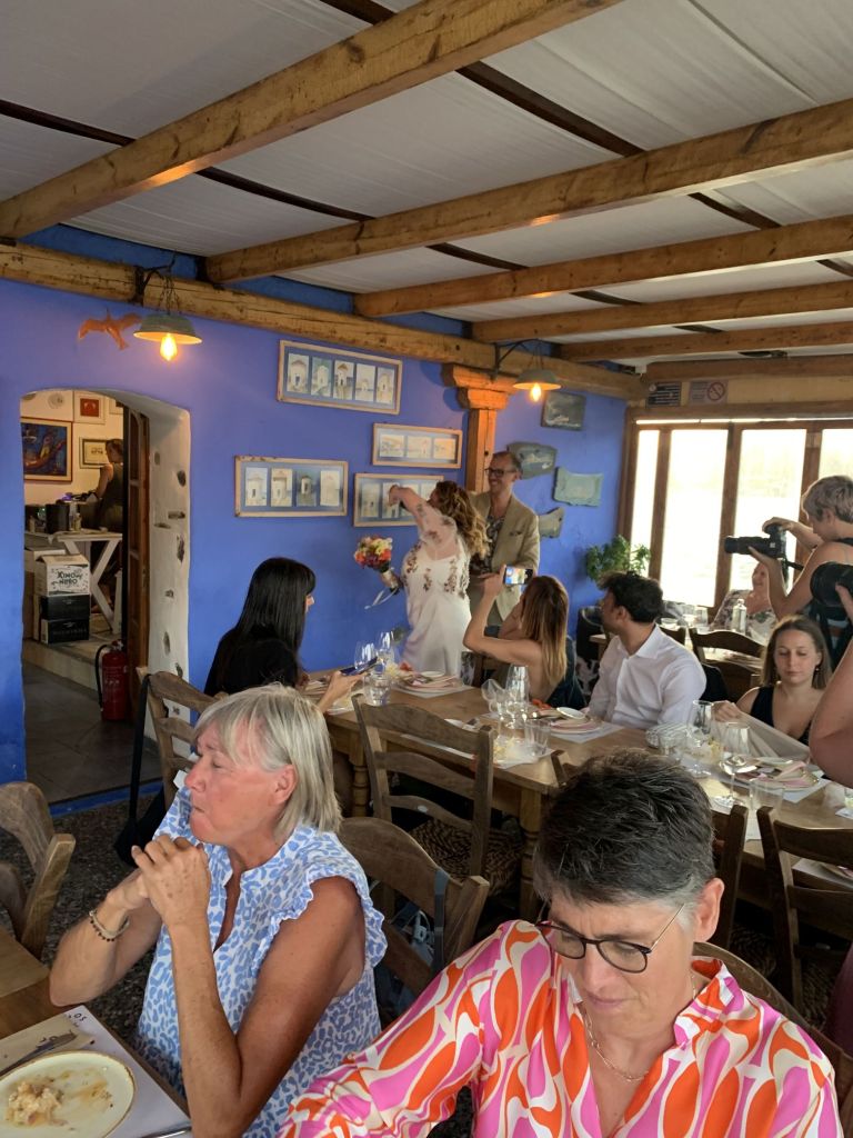 Natürlich applaudierten und gratulierten wir, als das Brautpaar die Taverne betrat und wir konnten zudem ein klein wenig beobachten – zusätzliche Kurzweil zu den vielseitigen Gesprächen an unserem Tisch…
