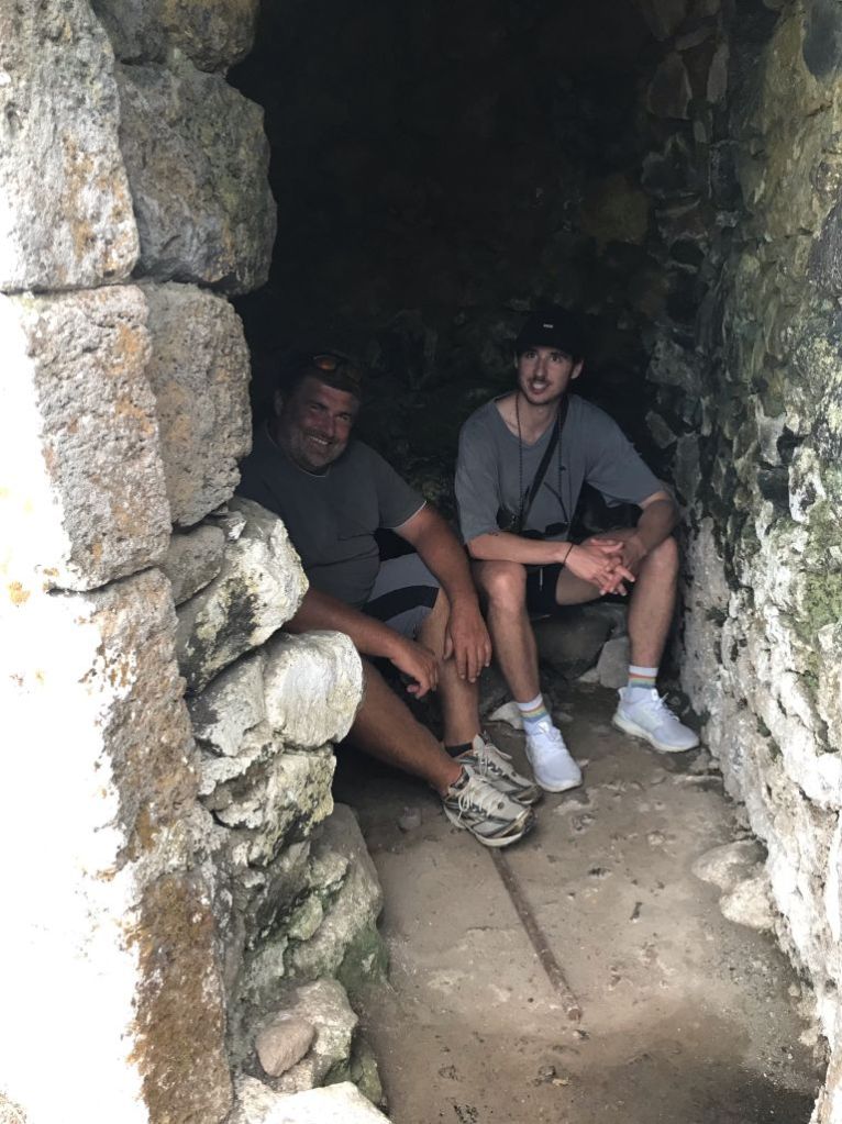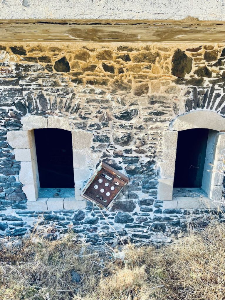 Wir setzten unsere Fahrt entlang einer Schotterstraße am Vulkanrand fort und kamen als nächstes in das Bergdorf Emborio. Auf dem Weg dorthin kommt man unweigerlich an einer „natürlichen Sauna“ vorbei – ein Gemäuer welches durch den Vulkan auf etwa 60°C aufgeheizt wird und welches früher wohl wirklich zu Erholungszwecken genutzt wurde. Natürlich haben Mikey und ich die Chance ergriffen einen Saunagang einzulegen…