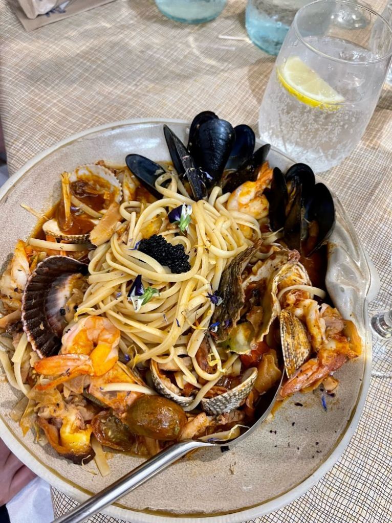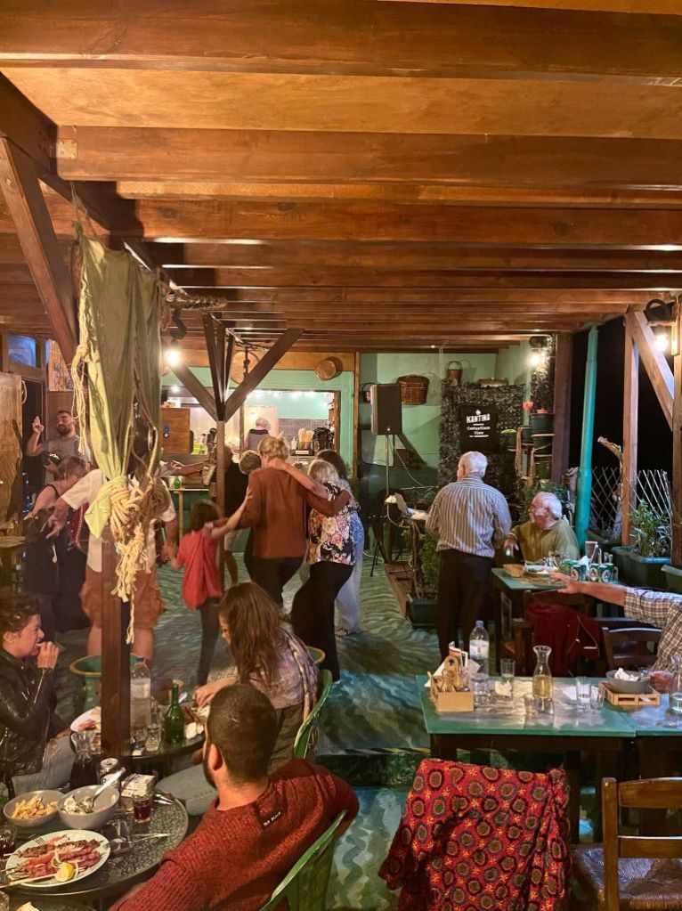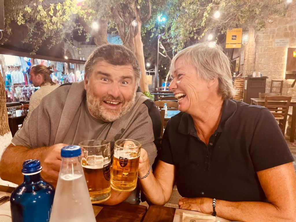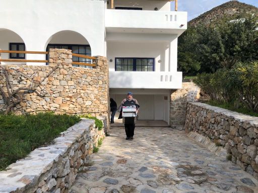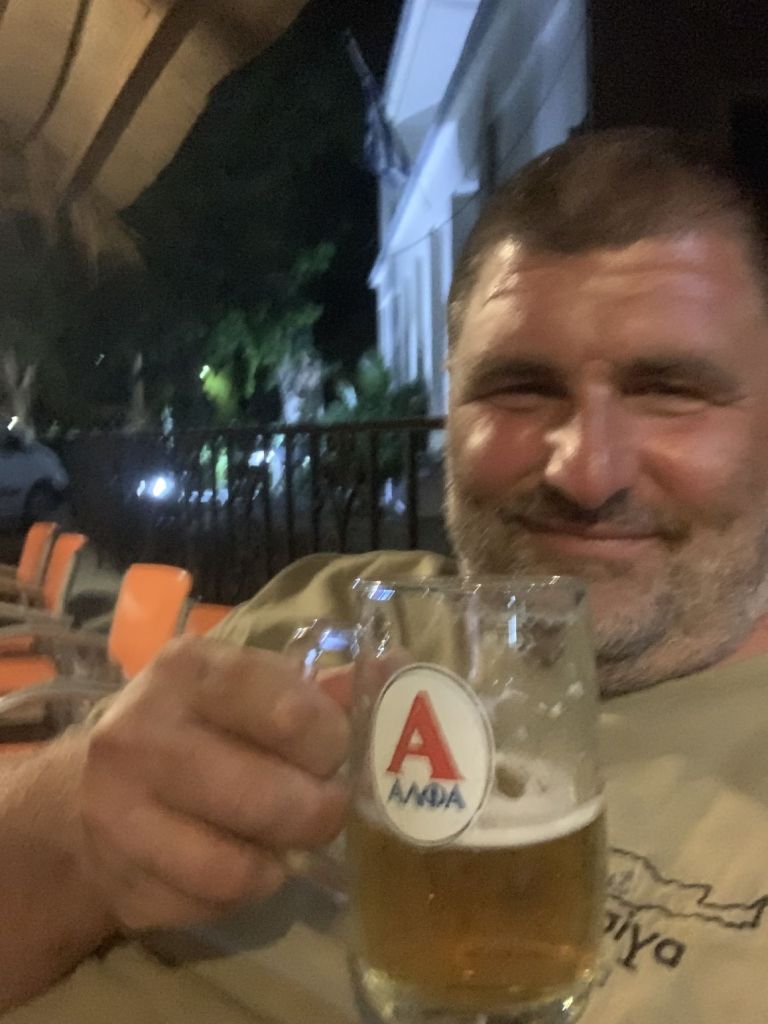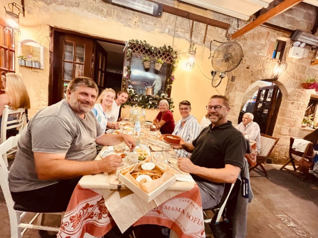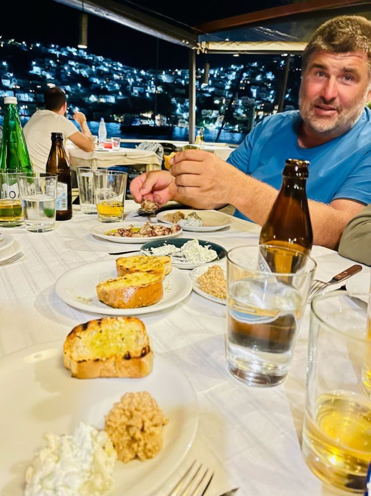 Sibylle kam wie geplant an, wir machten entspannt klar Schiff und gönnten uns am Abend ein Willkommensdinner bei unserem Freund Dimitris. Wir waren erledigt von der Anreise und wollten danach nur noch schlafen…