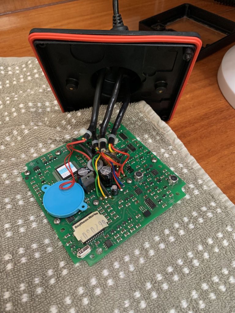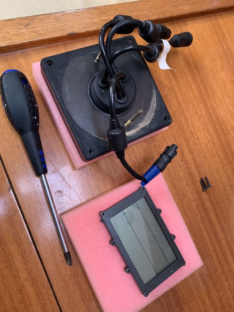 So konnte ich mit Hilfe eines Ersatzteiles für meine alte ST50+ Anlage, beschafft durch Fa. Ober in Österreich (der Raymarine Papst), endlich das matte Display meines Tridata ersetzen.