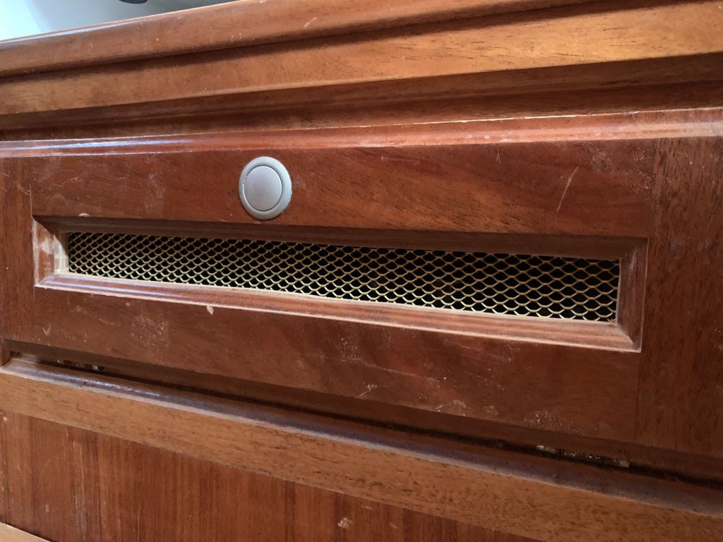 Im Rahmen der Reparatur- und Wartungsarbeiten wollte ich meinem neuen Kühlkompressor noch etwas mehr Atemluft gönnen – so hat er an der Wartungsklappe ein weiteres Lüftungsgitter bekommen.