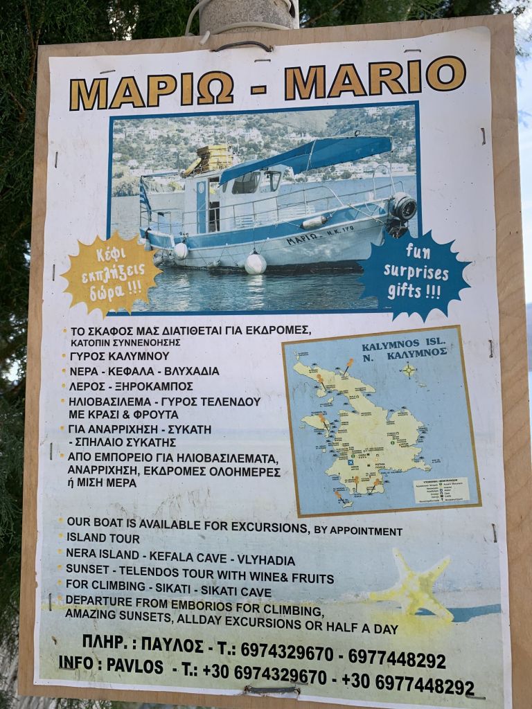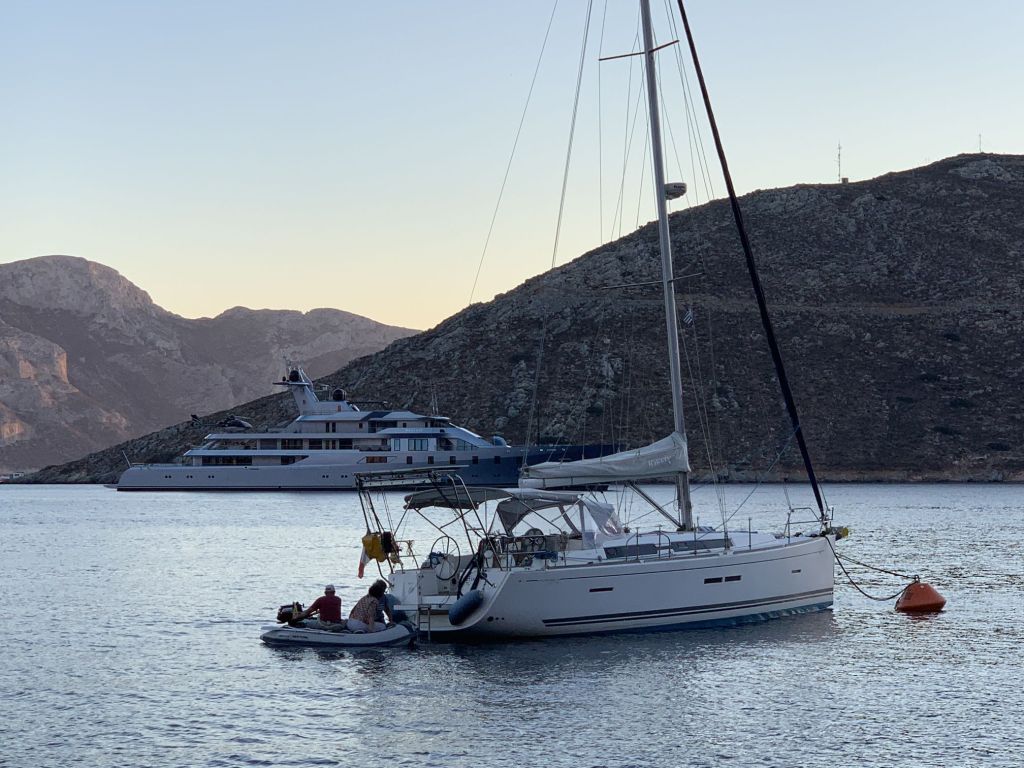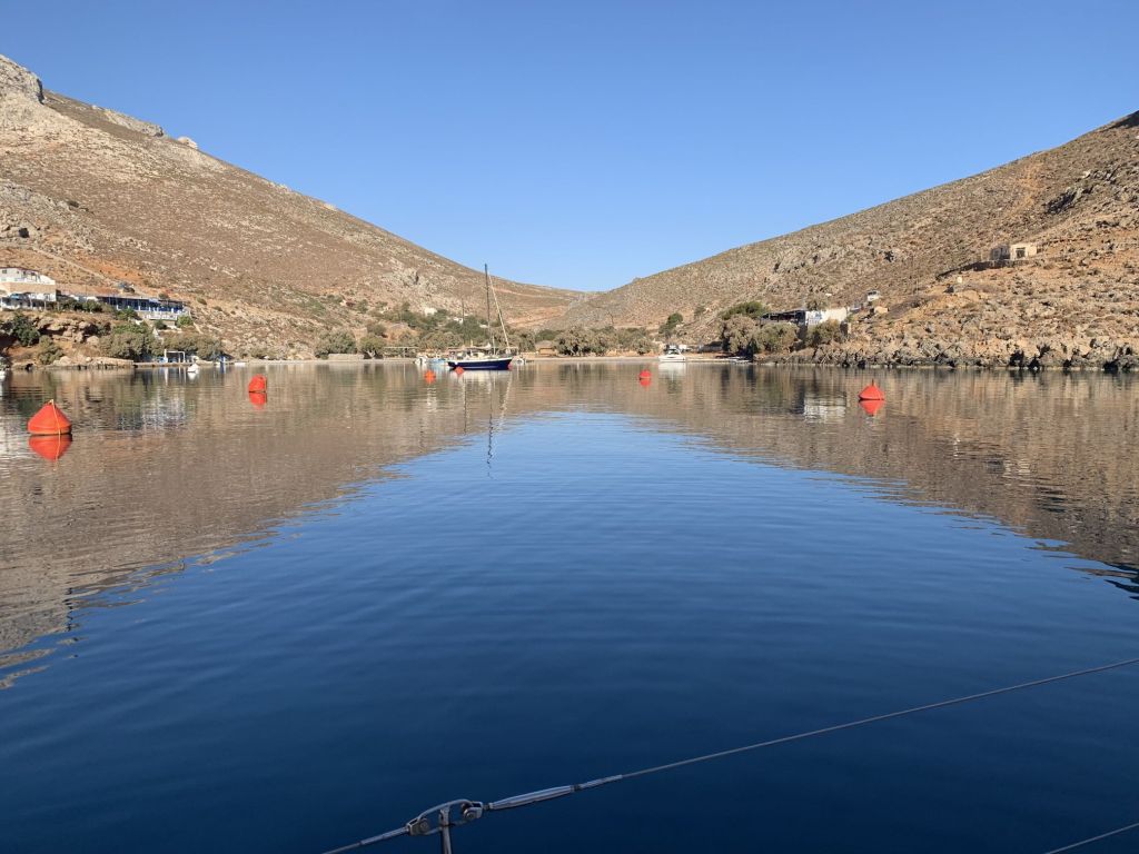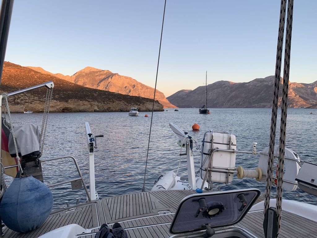 Wir haben also beschlossen, hier zwei zusätzliche Faulenzertage einzulegen, beschäftigen uns mit Lesen, Wandern, Essen – und eben Blog schreiben! Wir verzichten, wie eingangs schon erwähnt, auf Tilos und planen am 01.10. Richtung Symi abzulegen, dort sind auch moderate Bedingungen vorhergesagt. Es gilt dann Symi zu entdecken und zum Abschluss des Urlaubs von Franzi und Mikey noch Rhodos zu erkunden und unsicher zu machen.