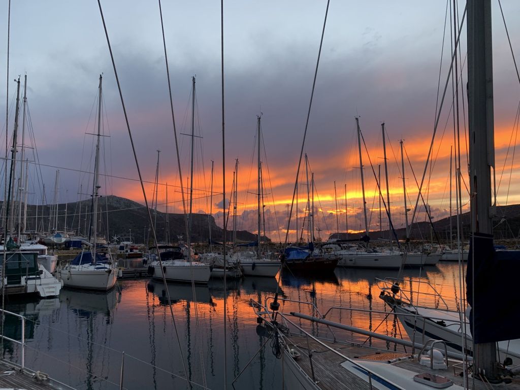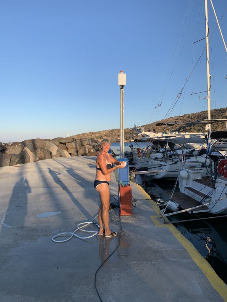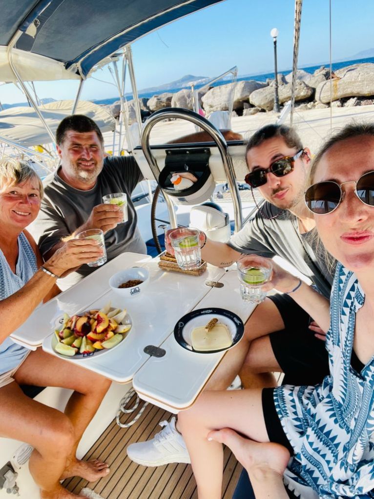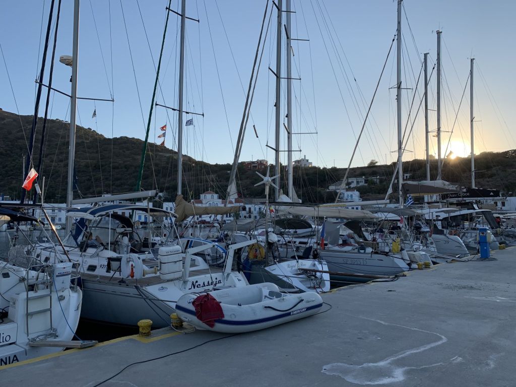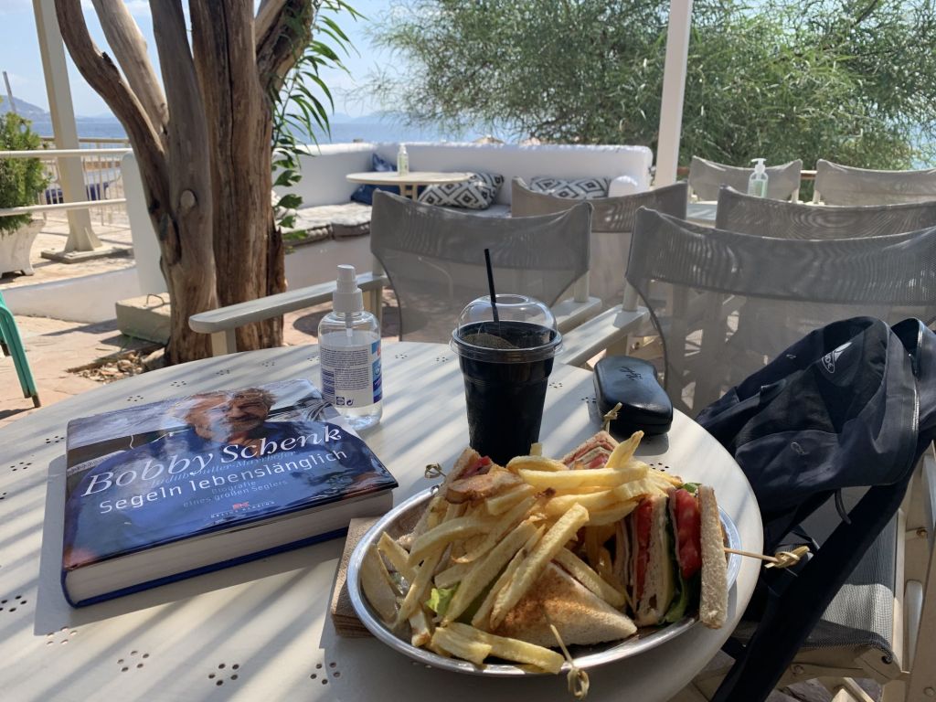 Genug geunkt – Franzi und Mikey kamen an, die Anreise war problemfrei und wir konnten noch einen Absacker in der Marinabar nehmen – wir haben uns von der selbsternannten „besten Bedienung Griechenlands“ verabschiedet (ich mag sie wirklich und sie ist auch gut!) und haben das Schiff für die Abreise am nächsten Tag klar gemacht.