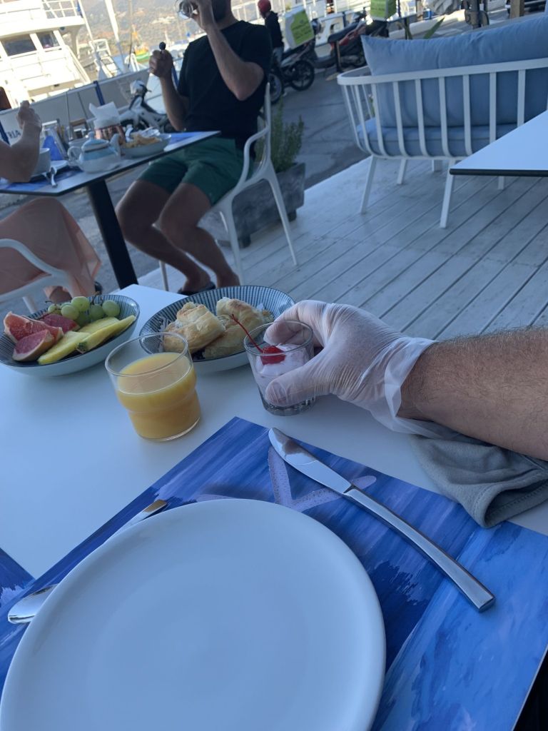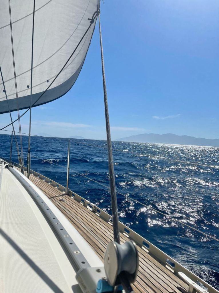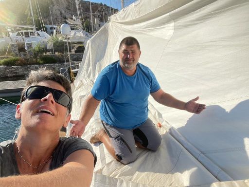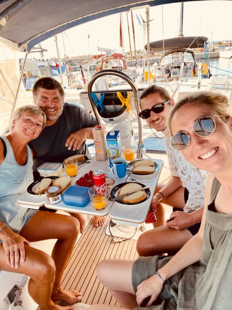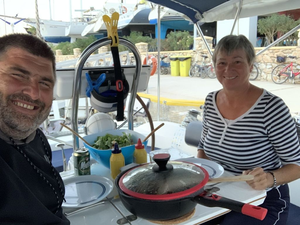 Genug geunkt – Franzi und Mikey kamen an, die Anreise war problemfrei und wir konnten noch einen Absacker in der Marinabar nehmen – wir haben uns von der selbsternannten „besten Bedienung Griechenlands“ verabschiedet (ich mag sie wirklich und sie ist auch gut!) und haben das Schiff für die Abreise am nächsten Tag klar gemacht.