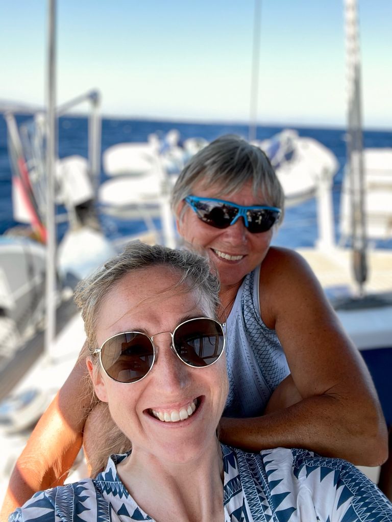 Herzliche Grüße von Bord der NESSAJA vom Skipper, der Capetana und der Crew Franzi & Mikey