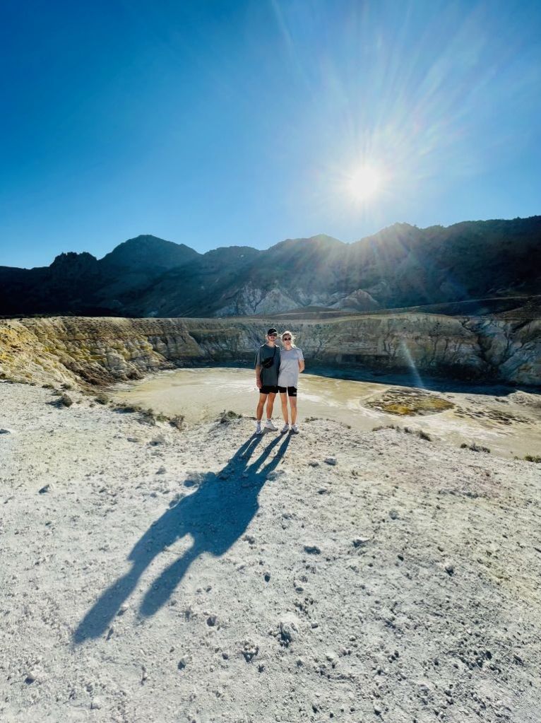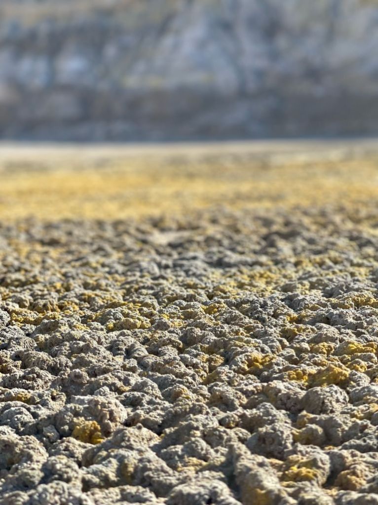 Dort angekommen, gingen wir dem Track nach, um diese Uhrzeit noch fast alleine, um einen Eindruck des Krater-Innenraums zu bekommen – in Deutschland fast unvorstellbar, dass man neben den Löchern, aus denen nach faulen Eiern riechendes, heißes Schwefelgas ausströmt, einfach so umhergehen darf…