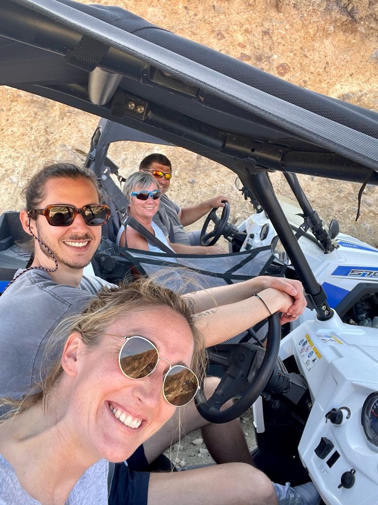 Nach einer kurzen Eingewöhnungsphase bekommt man raus wie das Vehikel gut zu beherrschen ist. Wir trauten uns mehr zu und wagten uns auch in das Gelände des Vulkankraters.