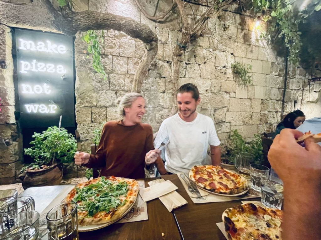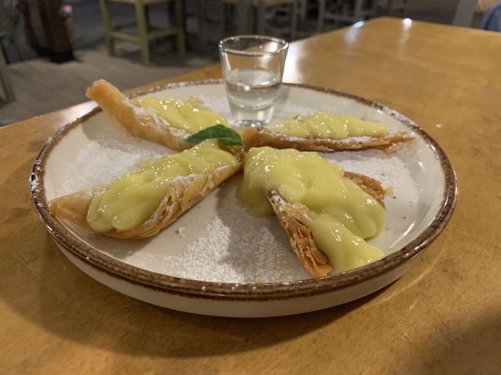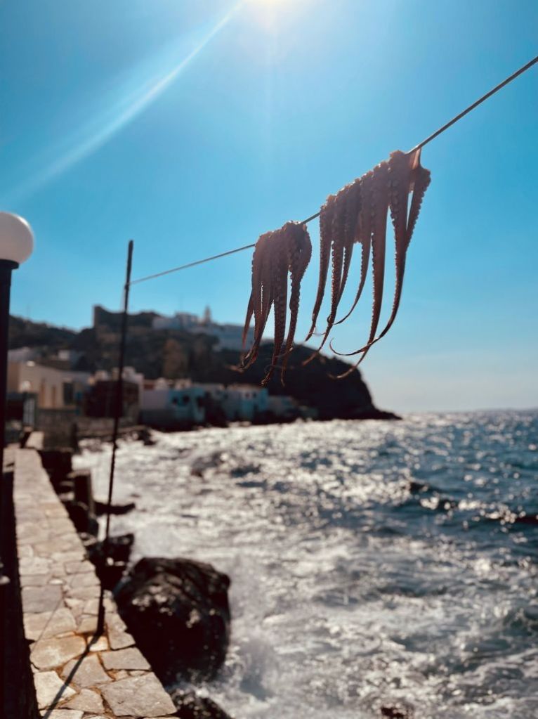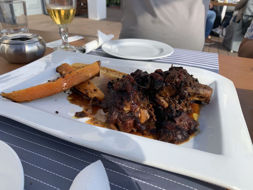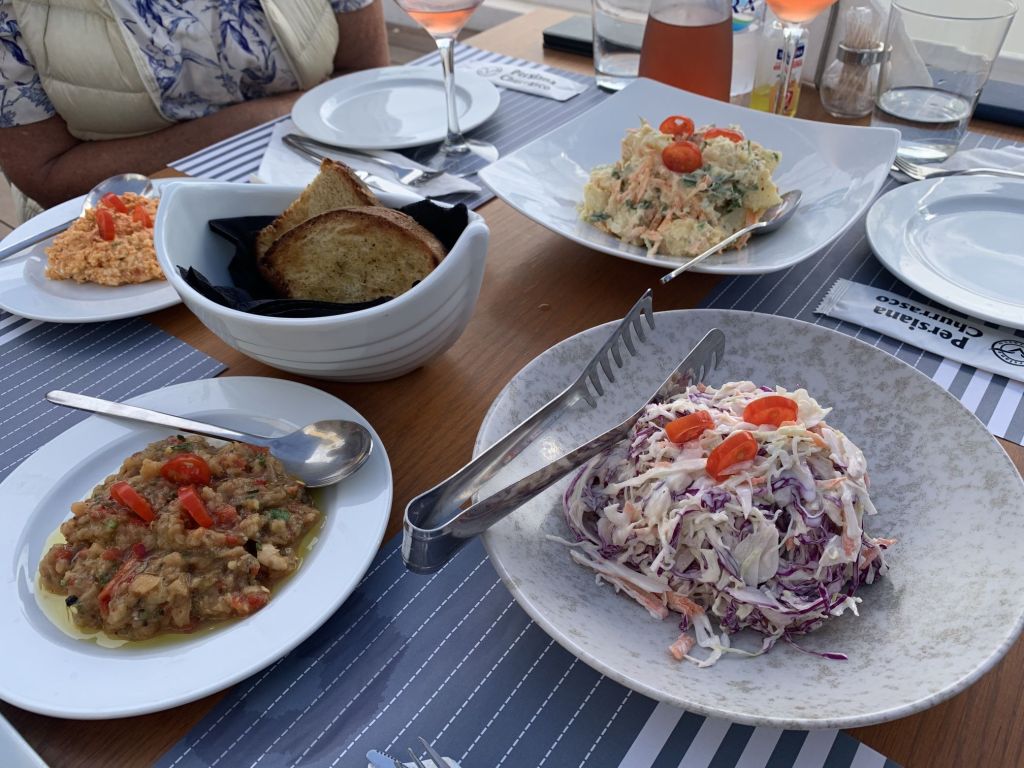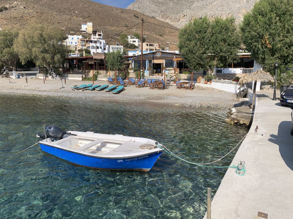 Unsere Idee war in Mandraki zu essen, hier gibt es ein Lokal welches in TripAdvisor mit 4,9 bewertet ist und direkt am Fuß des Klosters liegt. Da dies aber dauerhaft geschlossen schien, gingen wir kurzerhand der Empfehlung von Segelfreunden nach und reservierten im „Aphrodite“ in Paloi. Diese Taverne scheint die beste am Platze zu sein, wir können das nicht vergleichen aber im Ergebnis durchaus bestätigen. Das „Aphrodite“ ist sehr empfehlenswert, man wird freundlich empfangen und alles was wir gegessen und probiert haben war super. Reservierung ist empfehlenswert! Wir haben hier Johannes aus der Nähe von München kennen gelernt, er segelt alleine und wir konnten ihm ein wenig Kurzweil bescheren.