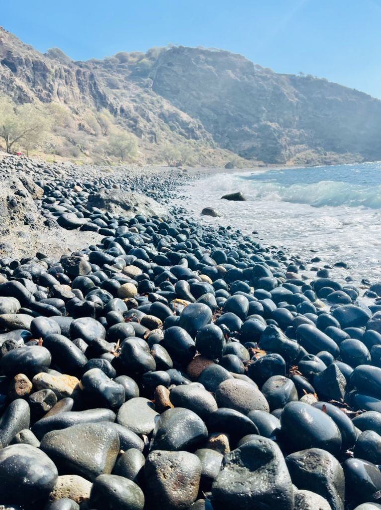 Wir gingen noch zum Kloster (leider geschlossen) und zum um die Ecke liegenden Strand der laut Reiseführer aus lauter schwarzen Vulkansteinen besteht. Das war wirklich schön anzusehen!