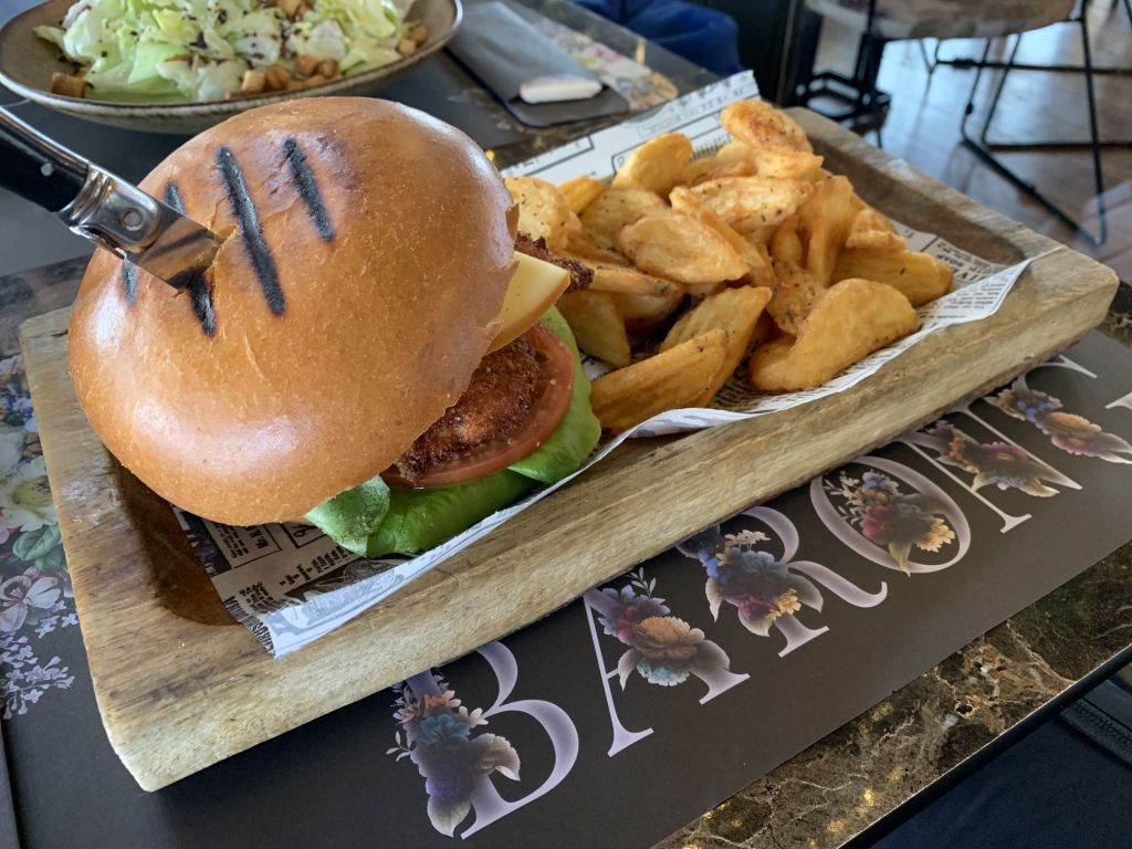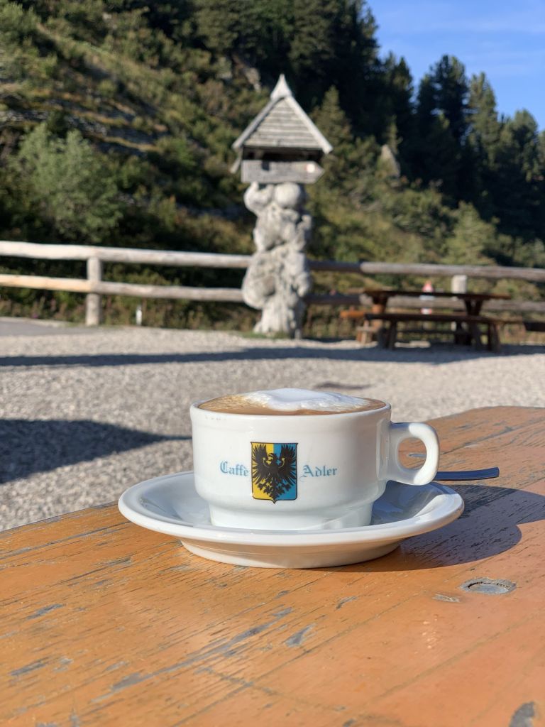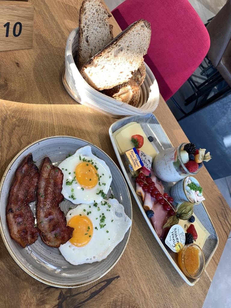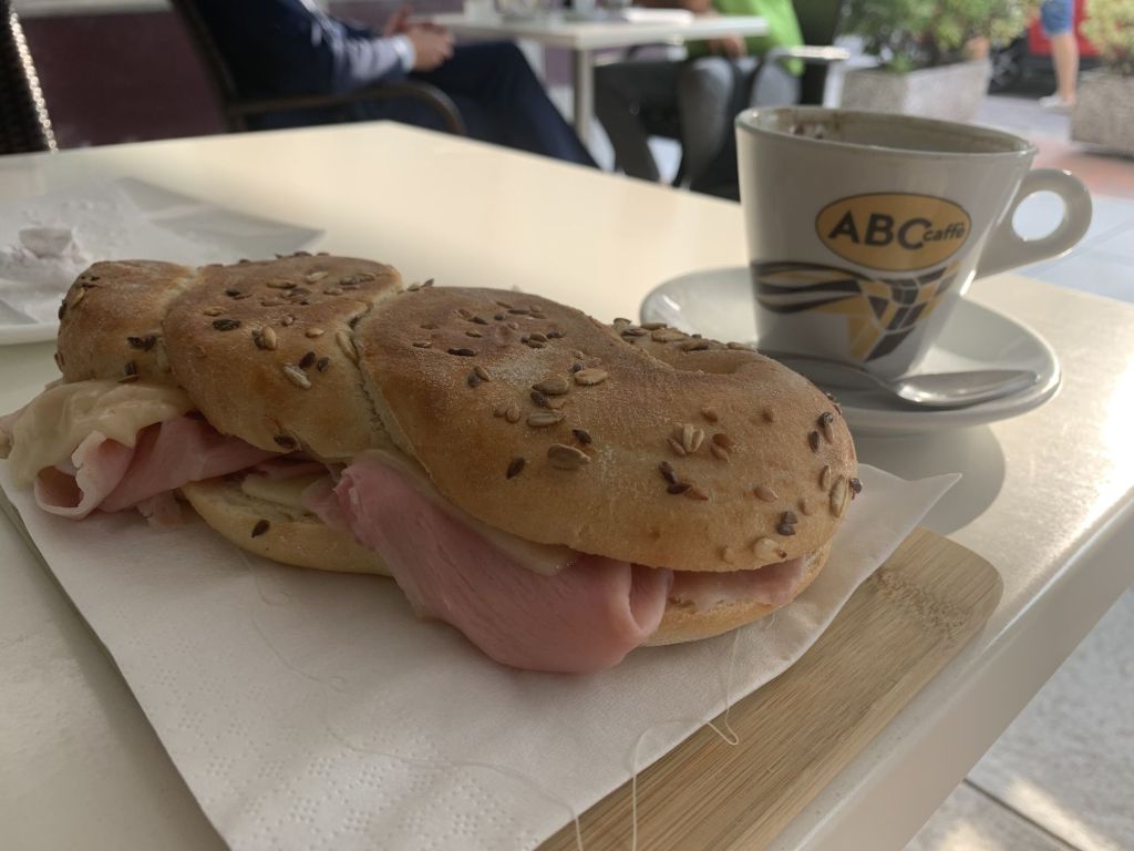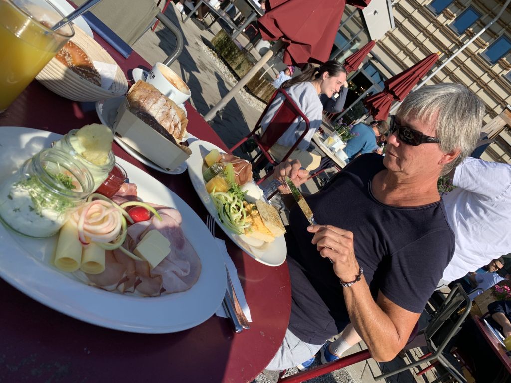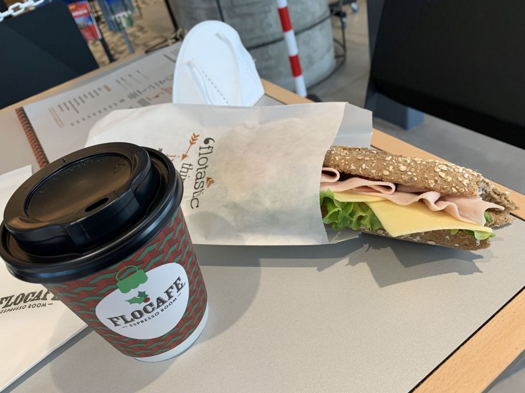 Eine gute Wahl wie sich zeigte – ein gutes Angebot und allerlei frische Sandwiches zum sehr leckeren Cappuccino. Der Tag begann gut, die Stimmung stieg…