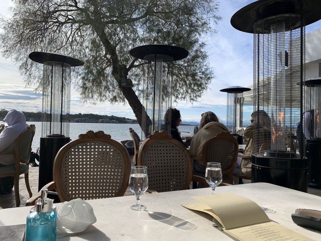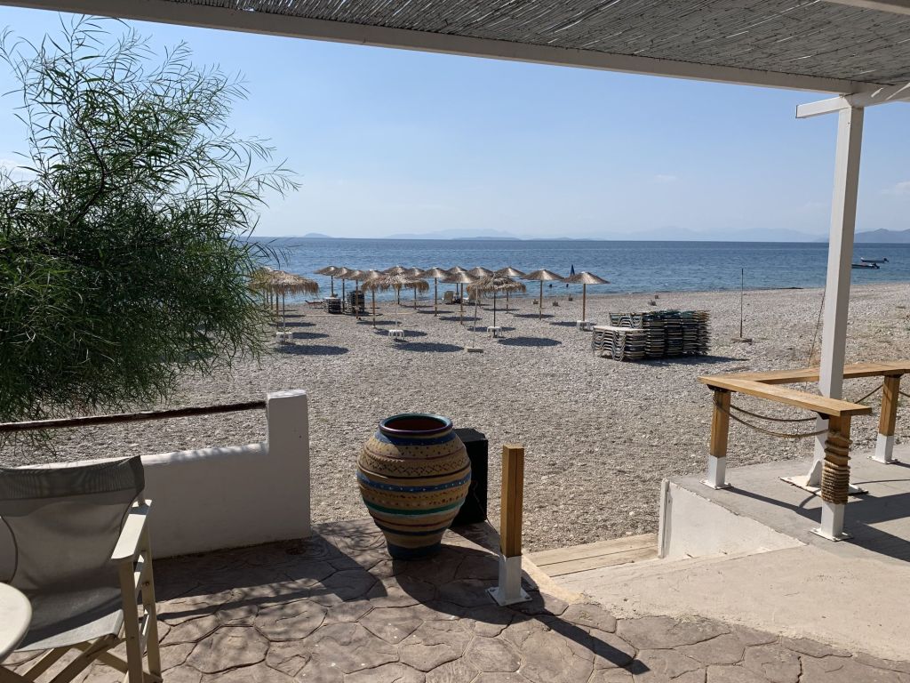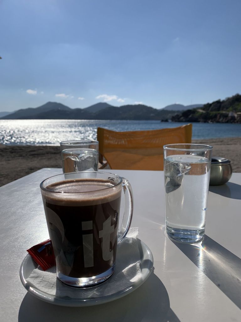 Wir sind ans Meer gefahren um irgendwo in einem der Strandcafes von Glyfada einen Cappuccino zu trinken und eine Kleinigkeit zu snacken – und wir haben ein außerordentlich schönes Plätzchen gefunden – wir konnten draußen sitzen.