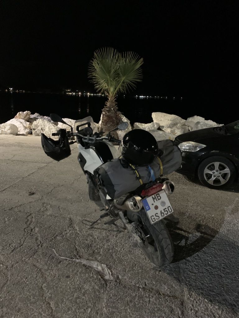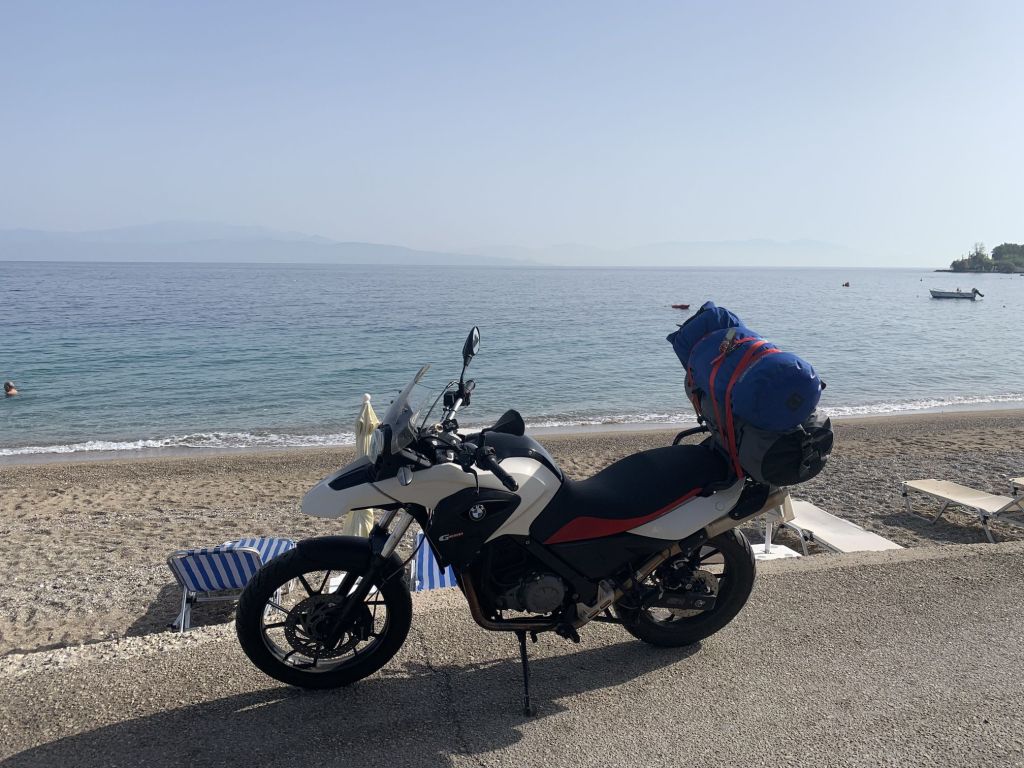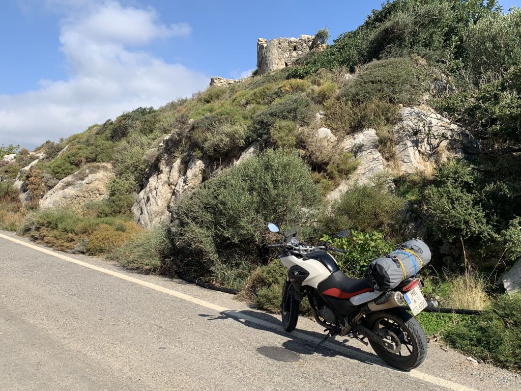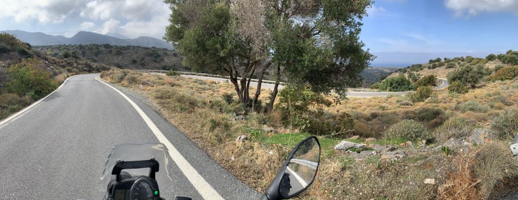 Und der ging gut los! Perfektes Wetter, warm, sonnig – ich stand recht früh morgens auf und fuhr auf der Autobahn an Patras vorbei. Ich hatte keine Lust durch die Stadt zu fahren. Kurz nach Patras wechselte ich auf die „Old National Road“ um die rund 200km nach Piräus auf der Landstraße abzuspulen.