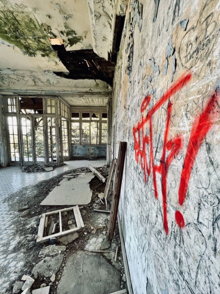 Die alte Therme aus den 1920er Jahren ist weitgehend verfallen, gibt aber ein beeindruckendes Fotomotiv ab.