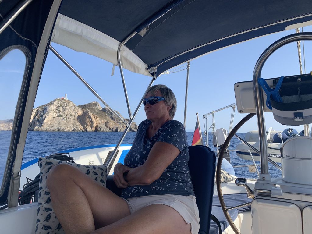 Der Wind frischte zwischenzeitlich auf, wir kamen bei 24kn / NW gut voran. Von einer Minute zur anderen hatten wir aber auch Phasen der Flaute. Unser erstes Ziel hieß Nisyros, wir wollten den Vulkan erkunden und die Insel entdecken. Sibylle und ich kannten das Eiland schon und konnten Franziska in ihren Plänen nur bestätigen. So musste navigiert werden um die Hafeneinfahrt von Paloi auch zuverlässig zu treffen – diesen Job übernahmen Mikey und ich.