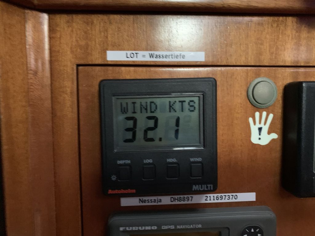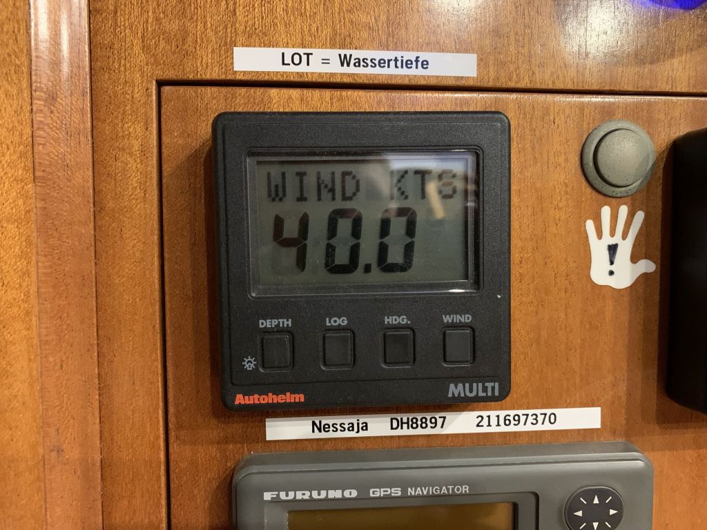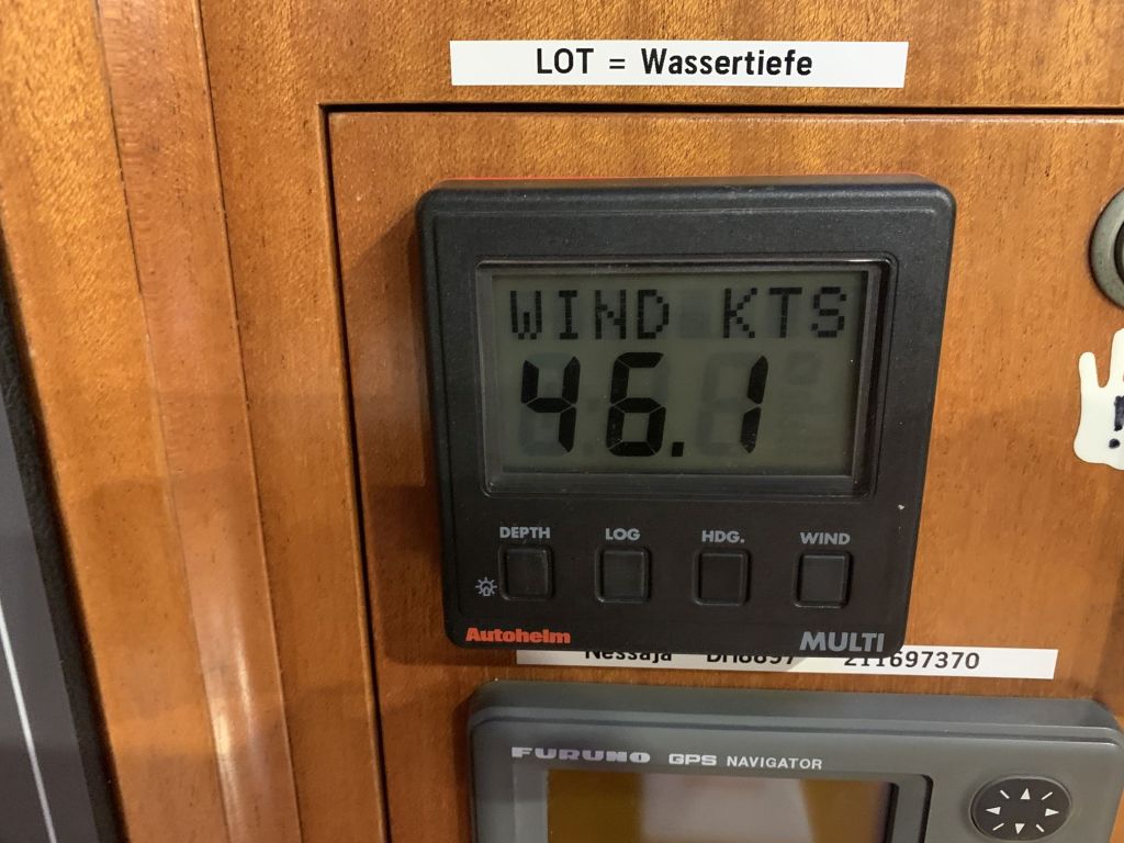 Vorab sei gesagt, wir sind jetzt seit 27.09. hier und werden definitiv noch bis zum 01.10. bleiben! Der vorhergesagte, stürmische NW 7 ist gekommen, weht beständig mit 6 und hat eben seine 7er Phasen. Das sind für mich Bedingungen unter welchen ich einen sicheren Liegeplatz nicht verlasse.