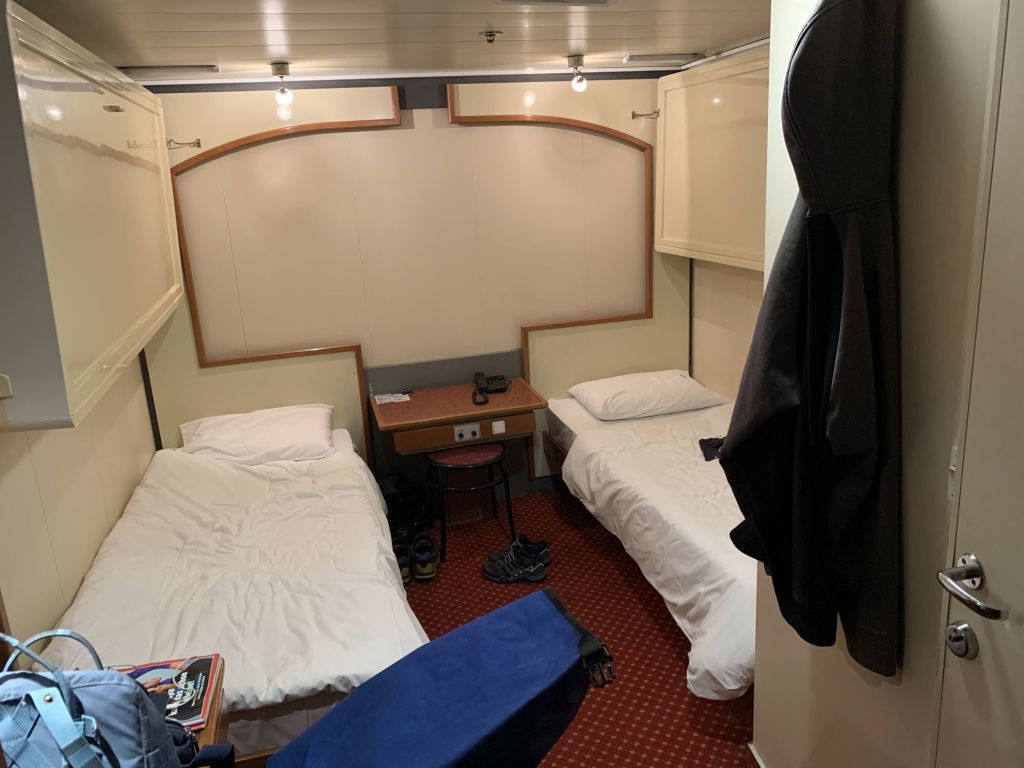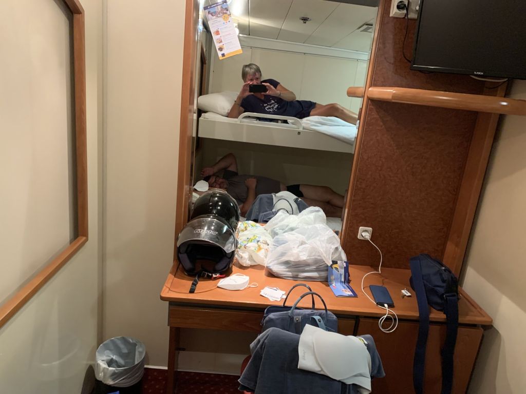…und wir beziehen unsere Kabine. Diesmal haben wir uns eine Außenkabine gegönnt, eigentlich wegen der langen Überfahrtsdauer von geplanten 31h, diese Entscheidung sollten wir nicht bereuen!
