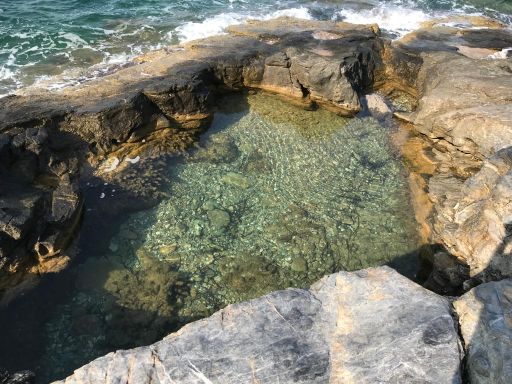Ich fuhr durch Dörfer, meist am Meer entlang, konnte Düfte wahrnehmen und die Sonne auf der Haut spüren. Nach etwa einer Stunde suchte ich mir einen wunderschönen Platz zum frühstücken aus.
