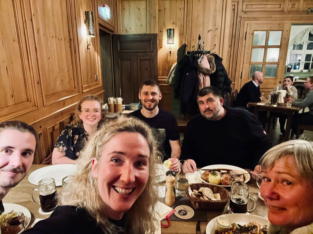 Amelie & Stefan sowie Franziska & Mikey – unsere Familiencrews 2021 – beim Abschiedsessen