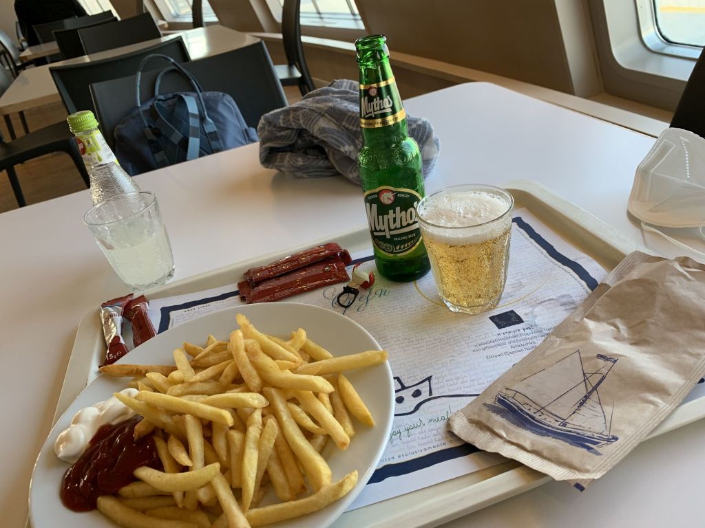 Die Zeit verging, wir haben eine zeitlang dem Verladeprozess zugesehen, das ist immer recht interessant und spannend. Im Anschluss hatten wir ein Hüngerchen und somit gleich das Bordrestaurant ausprobiert – ok, es gibt bessere Optionen zu speisen, aber für ein Self-Service Bordlokal ist es gut. Heute Mittag trotzdem nur Pommes…