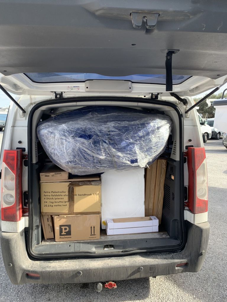 Die letzten drei Tage in Deutschland hieß es warten – warten auf die letzte Bestellung, die umfänglichste Lieferung. Die musste aber mit, wegen der haben wir den Bus noch einmal so voll gepackt.