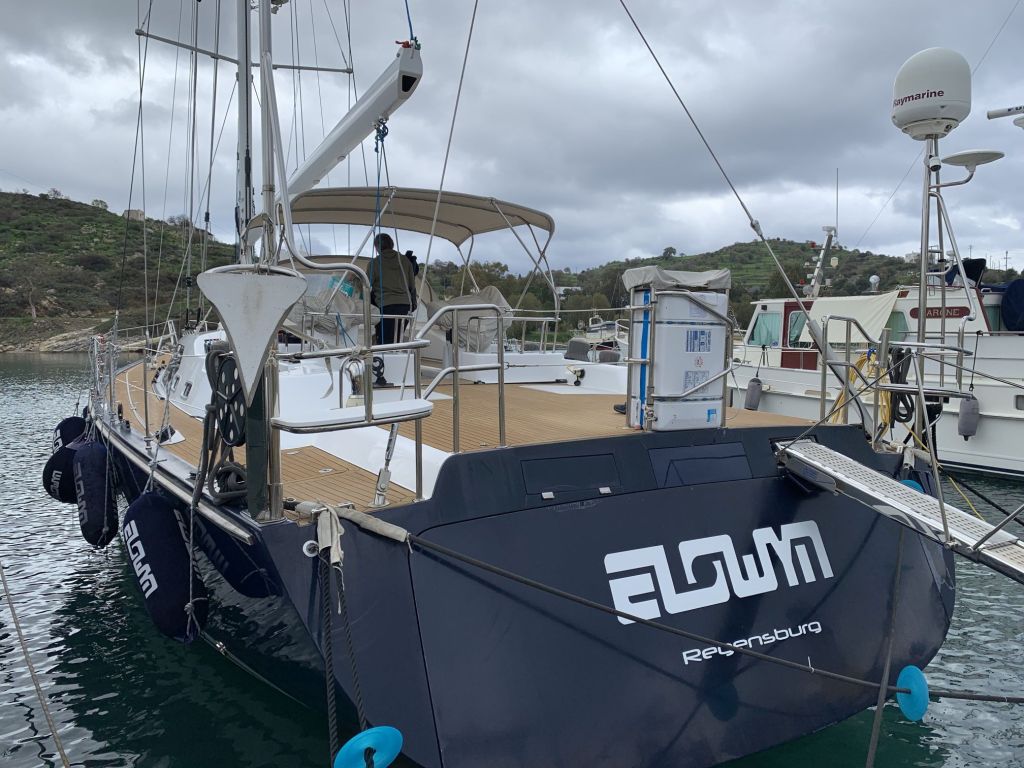 Blogleser der ersten Stunde kennen die ELOWYN. Wir kennen das Schiff seit Kiellegung und haben es zusammen mit den Eignern auf der Etappe Brest – Lissabon mit ins Mittelmeer überführt (Bilder am linken Seitenrand). Es war kein Zufall, dass das Schiff ausgerechnet diesen Winter hier liegt und uns zur Verfügung steht – eine winwin Situation wie Volker es formulierte. Für uns mehr als das!!!