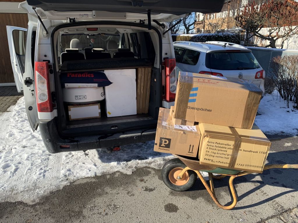 Tagsüber waren wir in Miesbach und haben uns mit den Enkelchen Otto und Benno beschäftigt, abends war Teile bestellen und einkaufen angesagt – alles was zugestellt wurde musste verpackt werden, der Paketbote kam täglich.