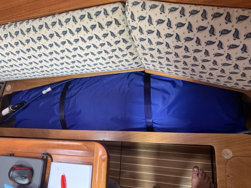 Unser Schnulli ist schon übel mitgenommen und nach sechs Jahren am Limit. Aber es muss 2021 noch durchstehen. Diese Anforderung drohte zu kippen nachdem sich Klebeverbindungen auflösten und das Dinghi Wasser machte. Wir mussten dauernd lenzen, das war so nicht zu akzeptieren.
