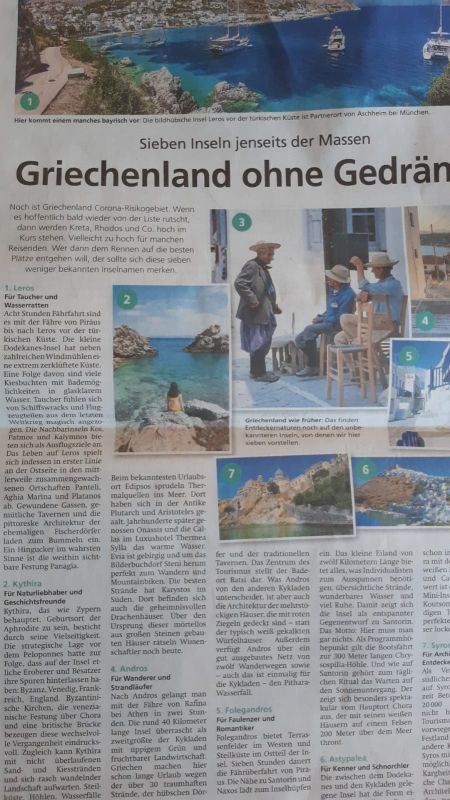 „Germany…“ antworte ich, „..near Munich“ – sie wurde interessiert – „Aschheim?“ höre ich sie fragen, ich wusste, dass meine ehemalige Heimatstadt Partnerstadt von Leros ist.