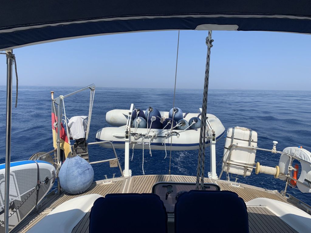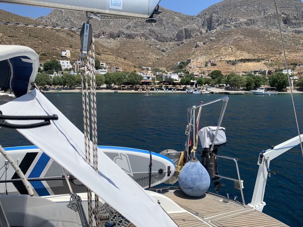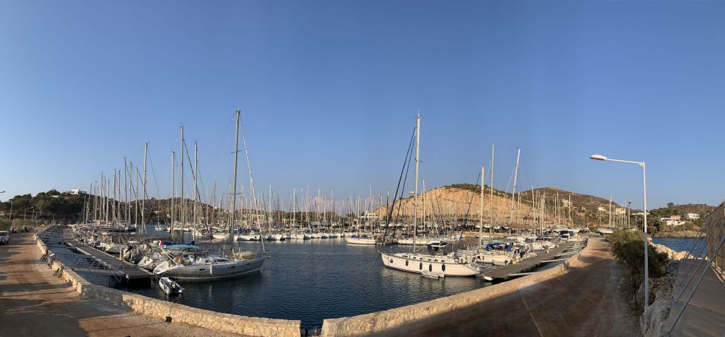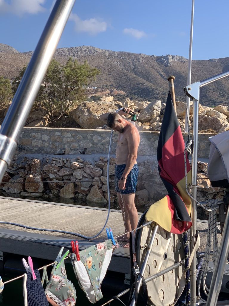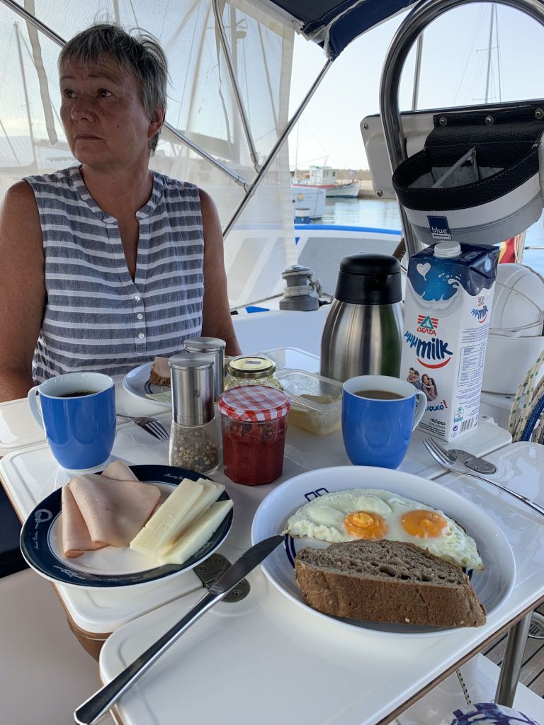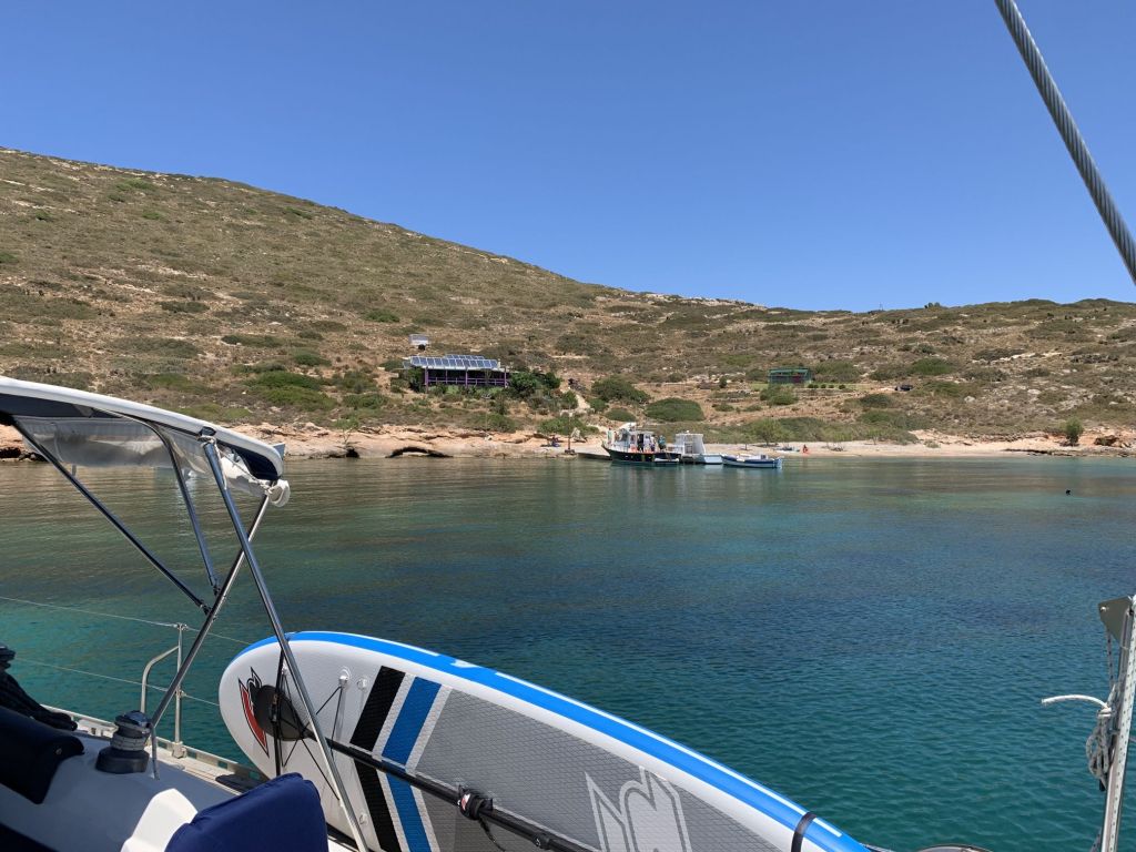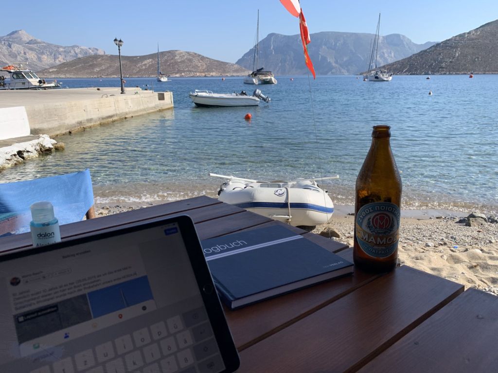 Wir wussten, dass Sibylle Mitte des Monats nach Deutschland fliegen würde, wir hatten das Auto hier und waren mobil, hatten schöne Tavernen und schöne Strände – was wir nicht hatten war ein bezahltes TEPAI, das wollten wir uns für den halben Monat August auch sparen. Zu guter Letzt, wir haben unseren Liegeplatz hier, es ist im Moment unsere Heimat – deshalb haben wir entschieden, der August wird ein statischer Monat…
