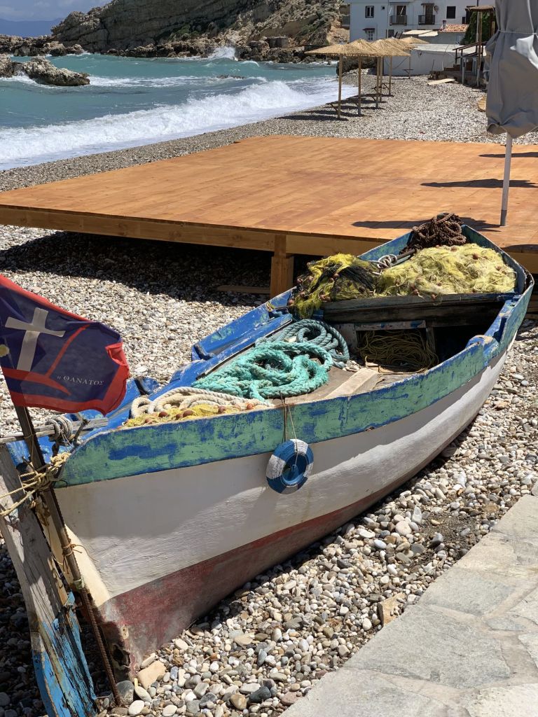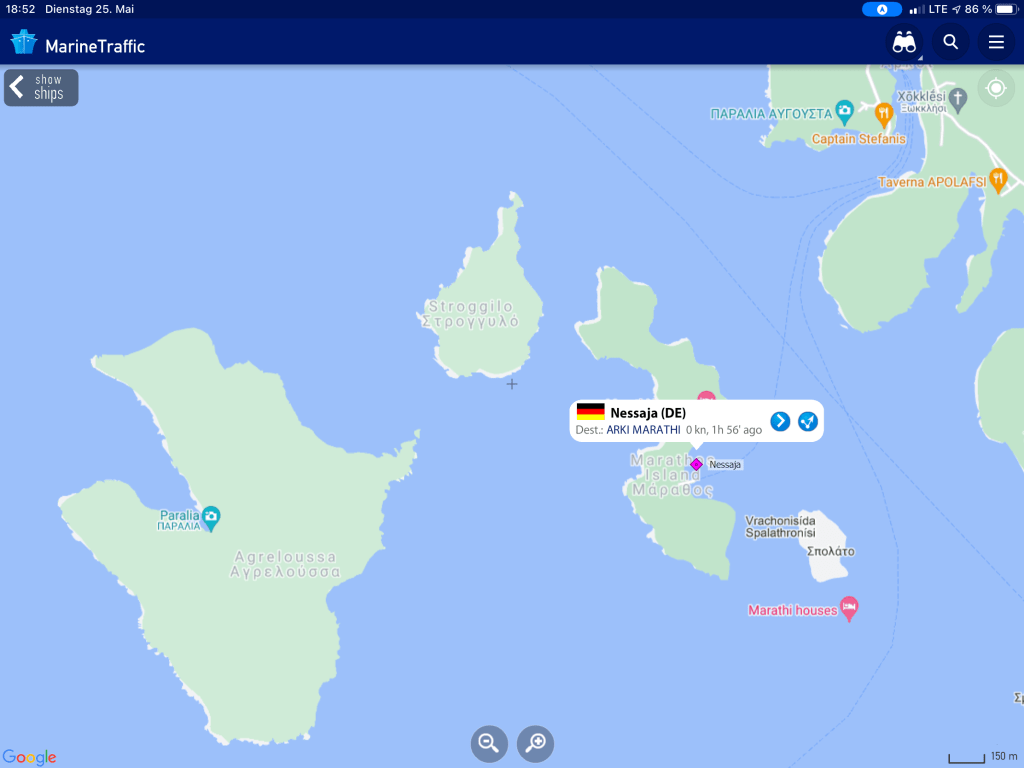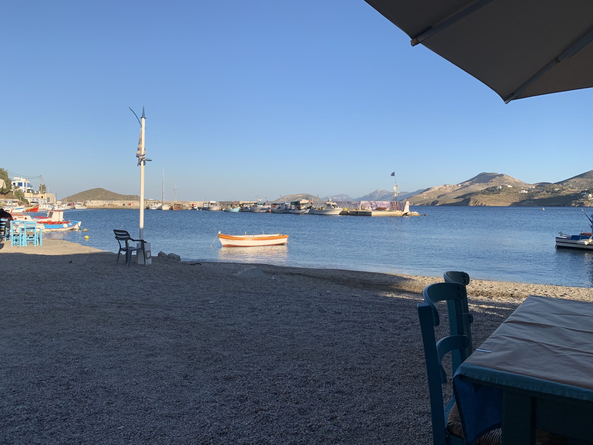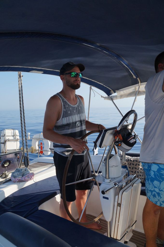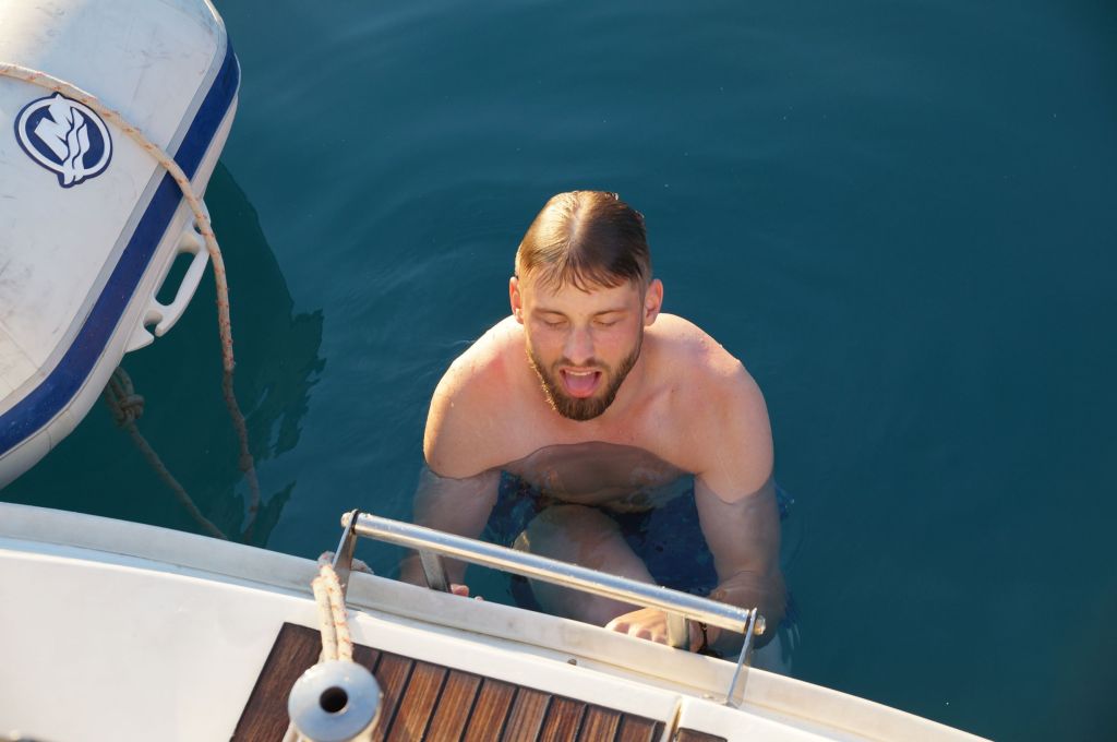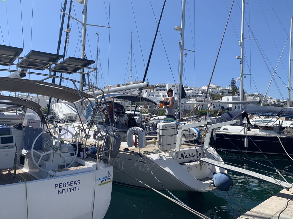 Wir wussten, dass Sibylle Mitte des Monats nach Deutschland fliegen würde, wir hatten das Auto hier und waren mobil, hatten schöne Tavernen und schöne Strände – was wir nicht hatten war ein bezahltes TEPAI, das wollten wir uns für den halben Monat August auch sparen. Zu guter Letzt, wir haben unseren Liegeplatz hier, es ist im Moment unsere Heimat – deshalb haben wir entschieden, der August wird ein statischer Monat…