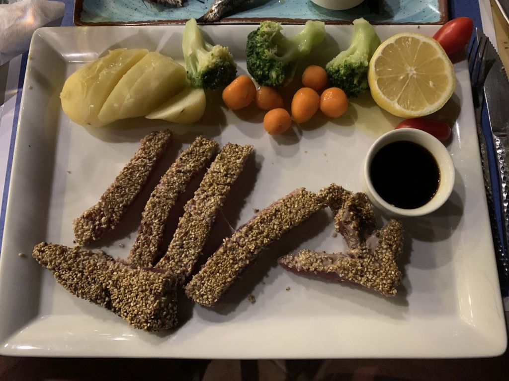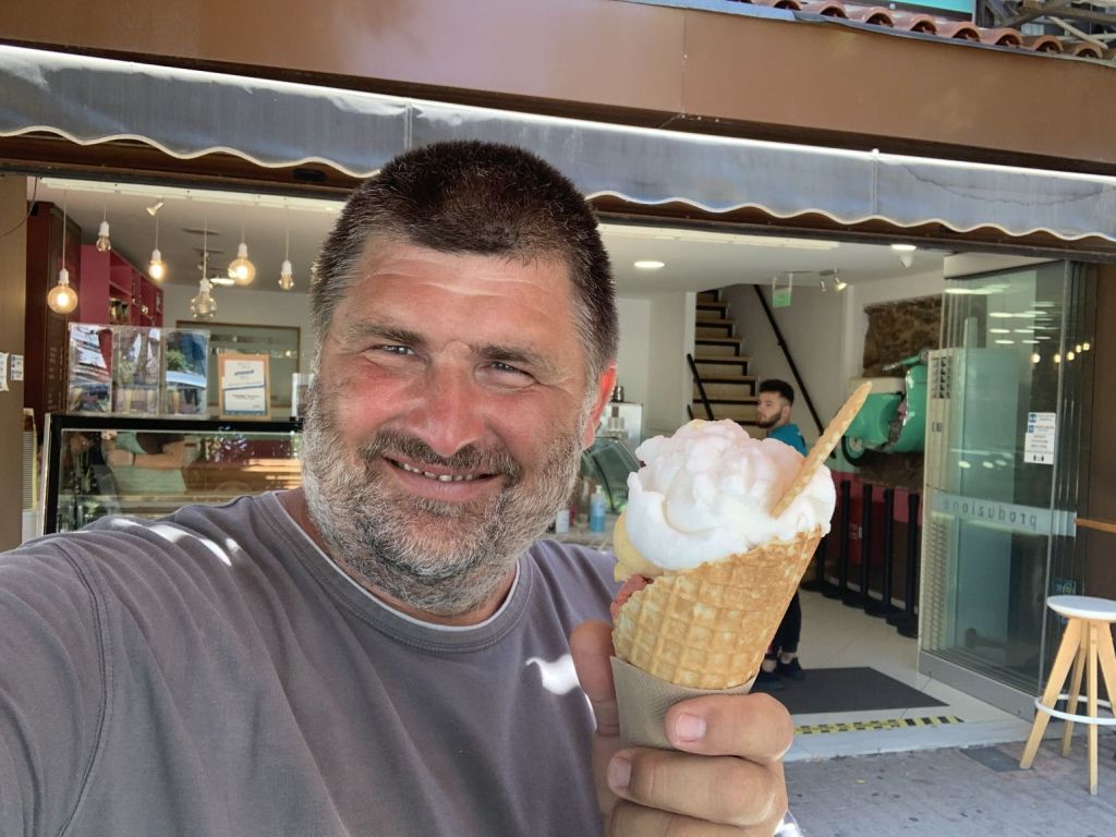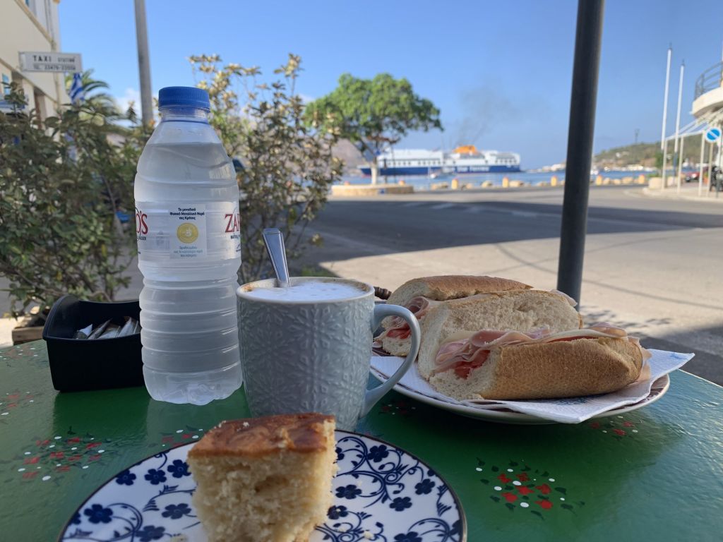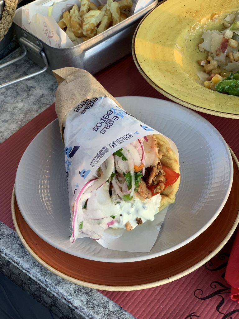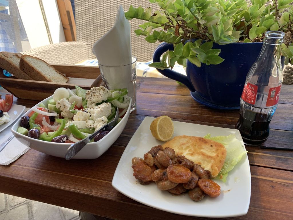 Wer viel arbeitet muss viel essen! Das habe ich mir zu Herzen genommen und mir, der Einfachheit und des Geldbeutels halber, eine „Food Strategie“ ausgedacht – morgens Marietta, immer das Gleiche bestellen, mittags Eisdiele, immer die gleichen Kugeln und abends zum „Souvlakki“ Grill, ihr ahnt es, immer das Gleiche bestellen!