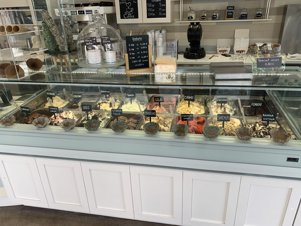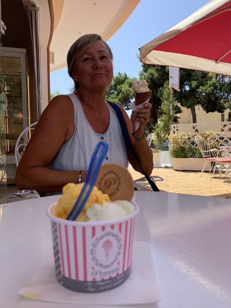 In der Eisdiele sorgte mein tägliches Erscheinen wirklich für Freude und Kurzweil, drei Kugeln gibt immer eine unrunde Summe mit viel Klimper-Rückgeld. So wurde kurzerhand festgelegt, dass ich für meine Bestellung täglich eine runde Summe zu zahlen hätte – Punkt! So spart man! 😉