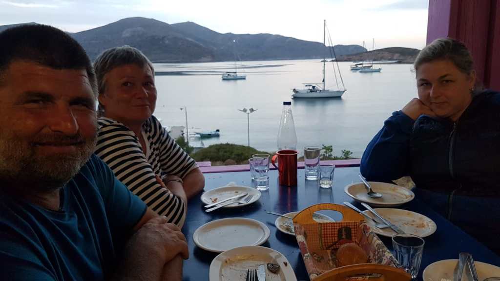 Zuerst mussten wir aber noch Sibylle verabschieden – gebührend versteht sich – und das machten wir mit einem Festmahl bei Dimitris, zusammen mit den Crews der „Jasper“ und der „Harmony“ – wohl ahnend, dass es sich bei der ein oder anderen Crew, unter Einhaltung grober Zeitpläne, eher um ein „Lebewohl“ als um ein „Auf Bald“ handelt.